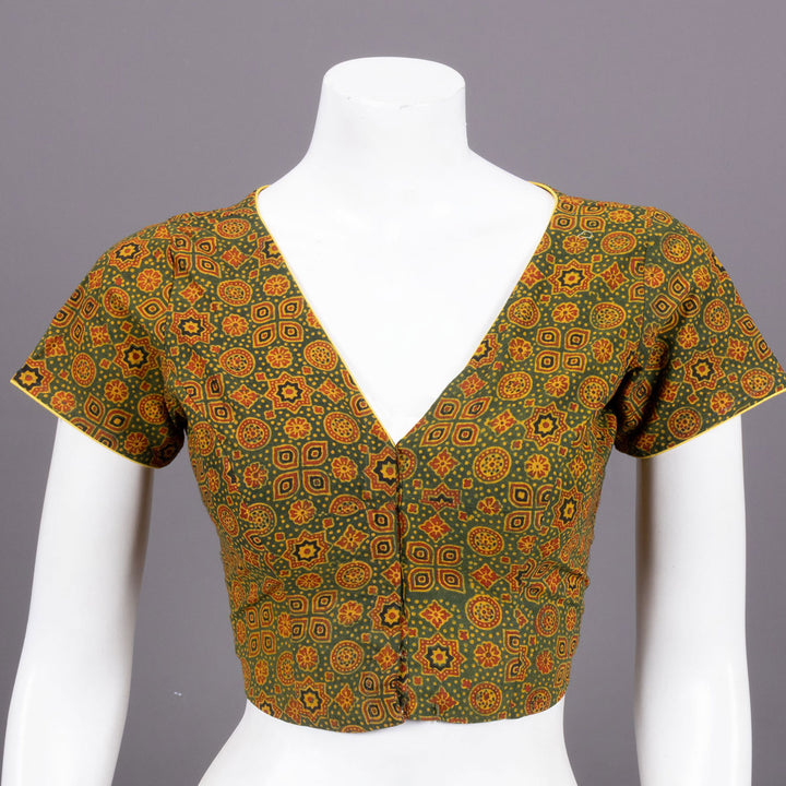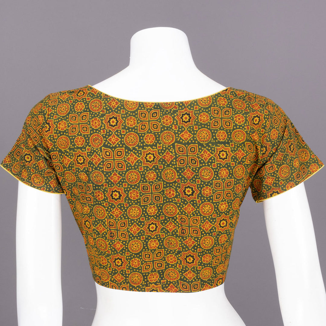 Green Ajrakh Printed Cotton Blouse 10072254
