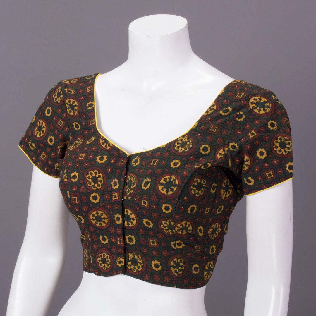 Experience the beauty of traditional Indian design with our Green Ajrakh Printed Cotton Blouse. Made from high-quality cotton, this blouse features intricate Ajrakh prints that add a touch of elegance and cultural charm. Perfect for any occasion, this blouse is a must-have for your wardrobe!