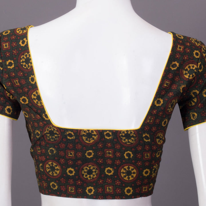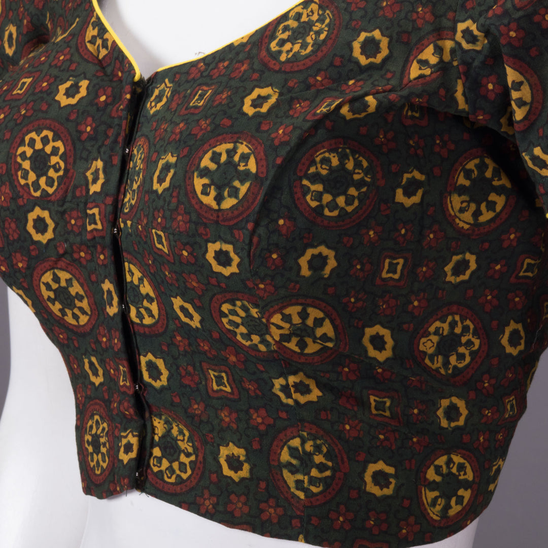 Green Ajrakh Printed Cotton Blouse 10073365