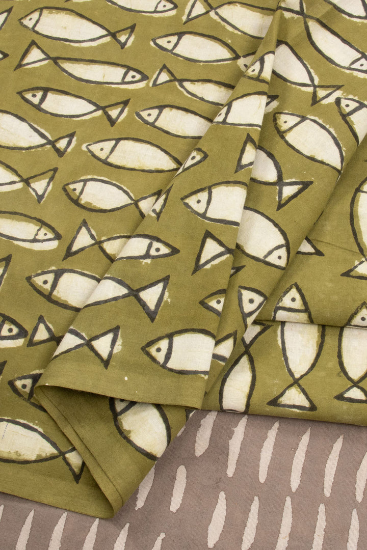 Green Bagru Printed Cotton Salwar Suit Material 10071597