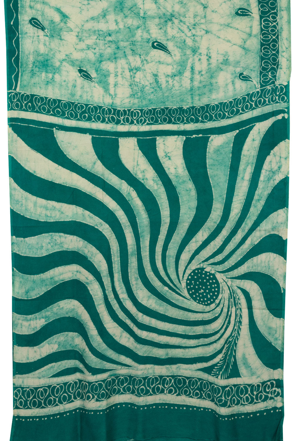 Green Batik Printed Muslin Silk Saree 10066198