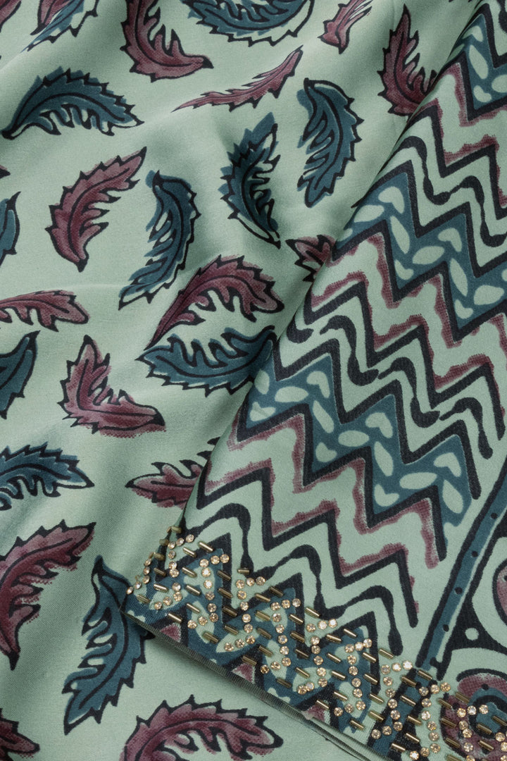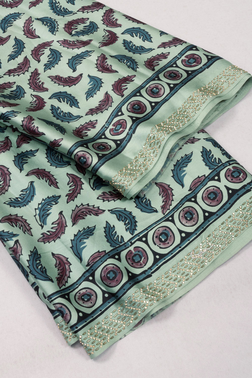 Green Ethnic Printed Stone Work Modal Silk Saree 10073733