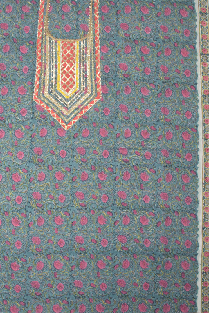 Green Gotapatti Embroidered 3-piece Cotton Salwar Suit Material 10065086