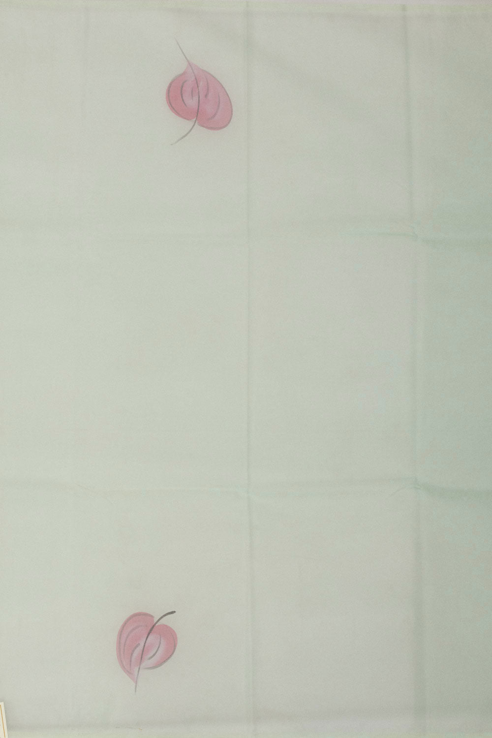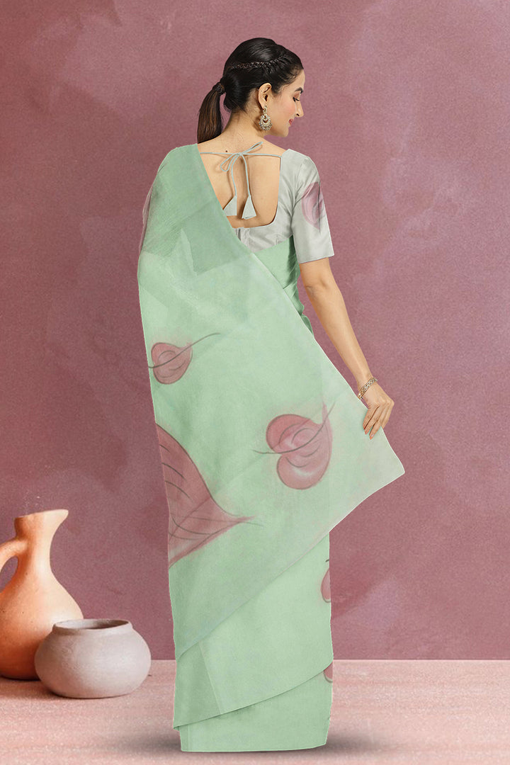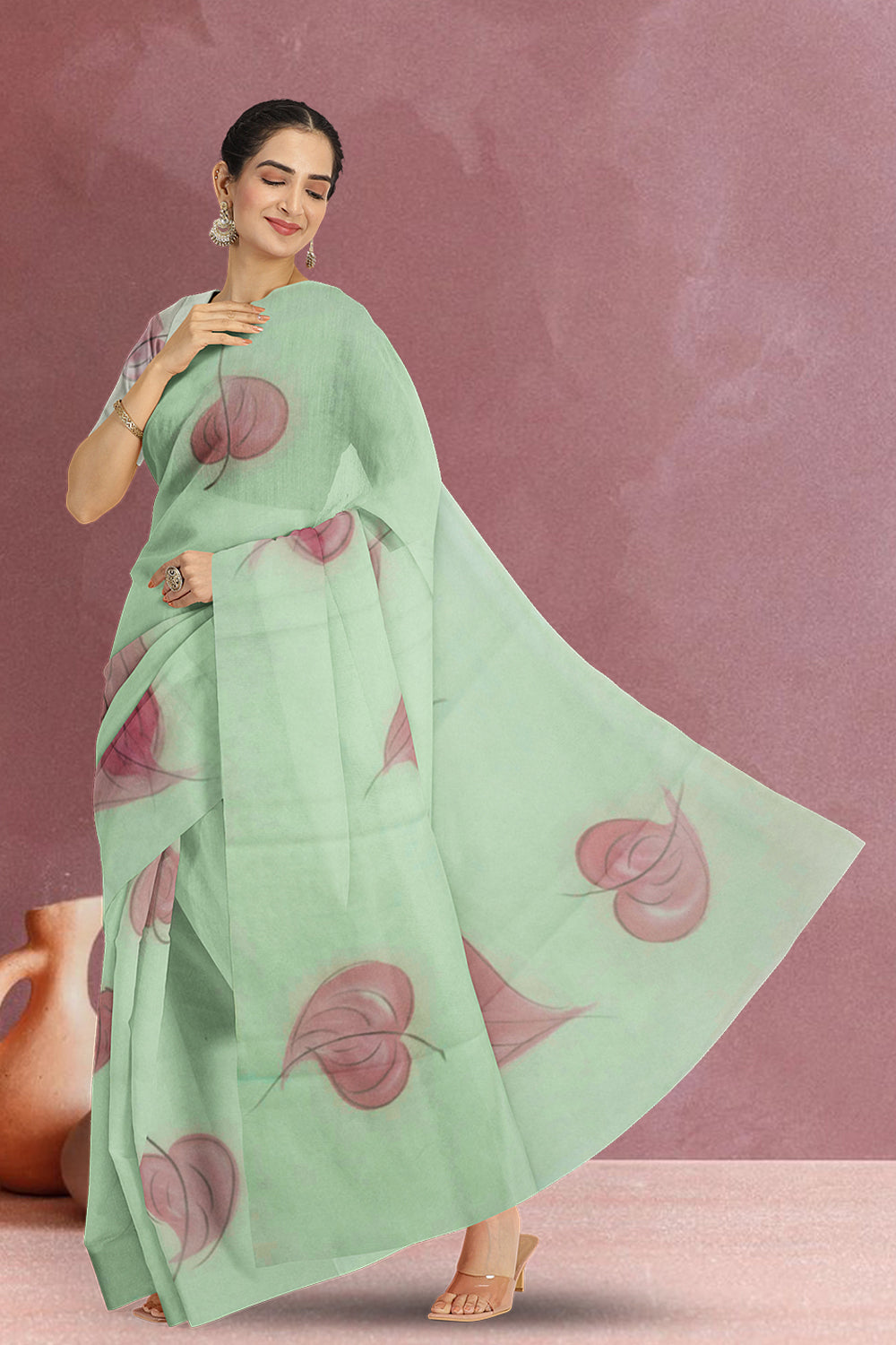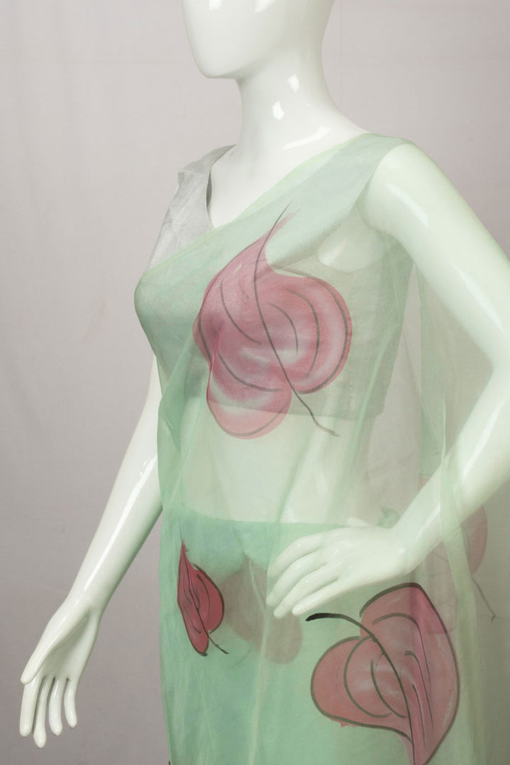 Look gorgeous in this green hand-painted organza saree. With a beautiful floral design, this saree is certain to make a statement!