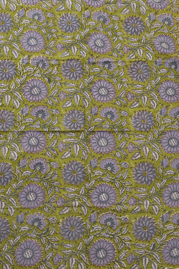 Green Handblock Printed Cotton 3-Piece Salwar Suit Material with Chiffon Dupatta 10072960
