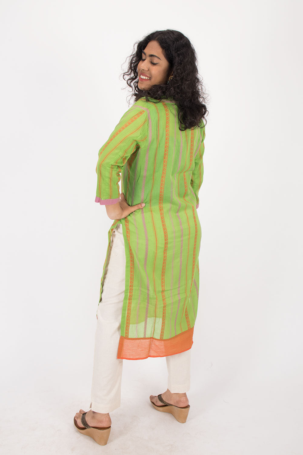 Green Handcrafted Dhaniakhali Cotton Kurta 10073983
