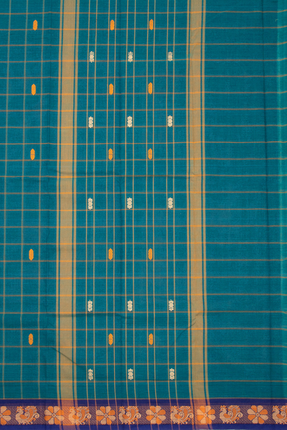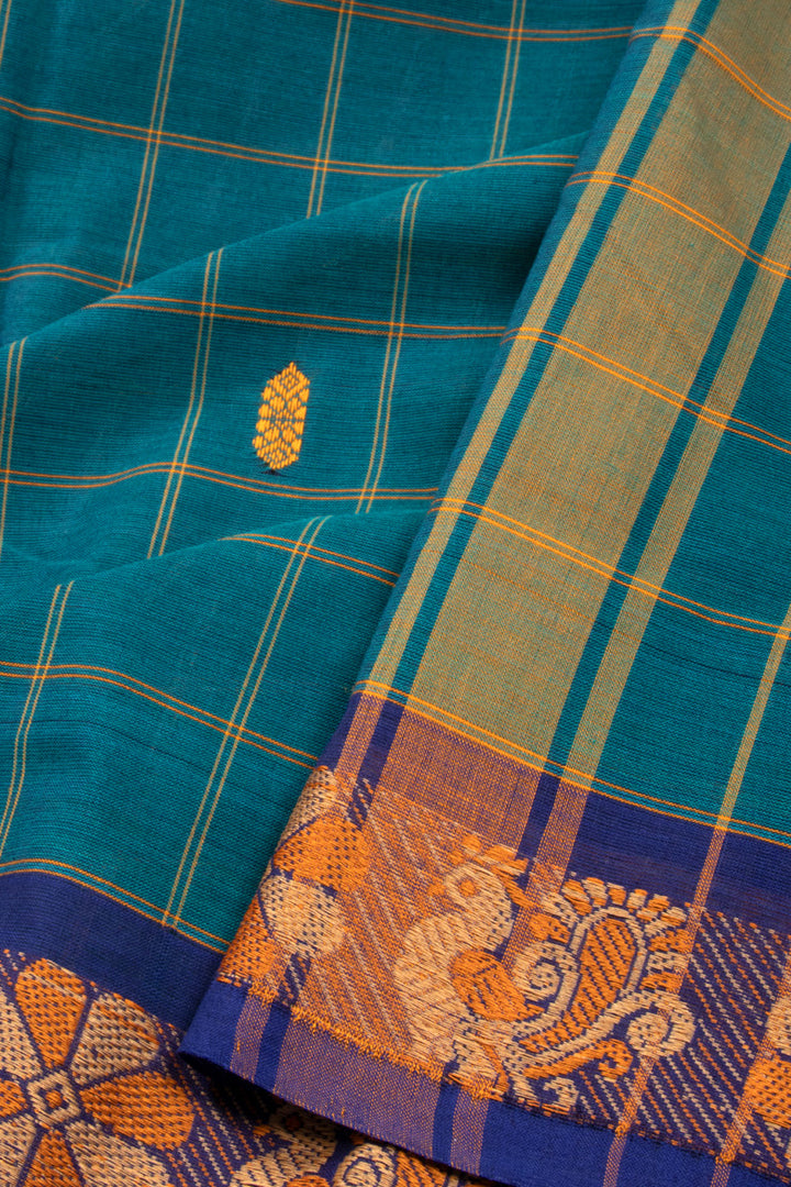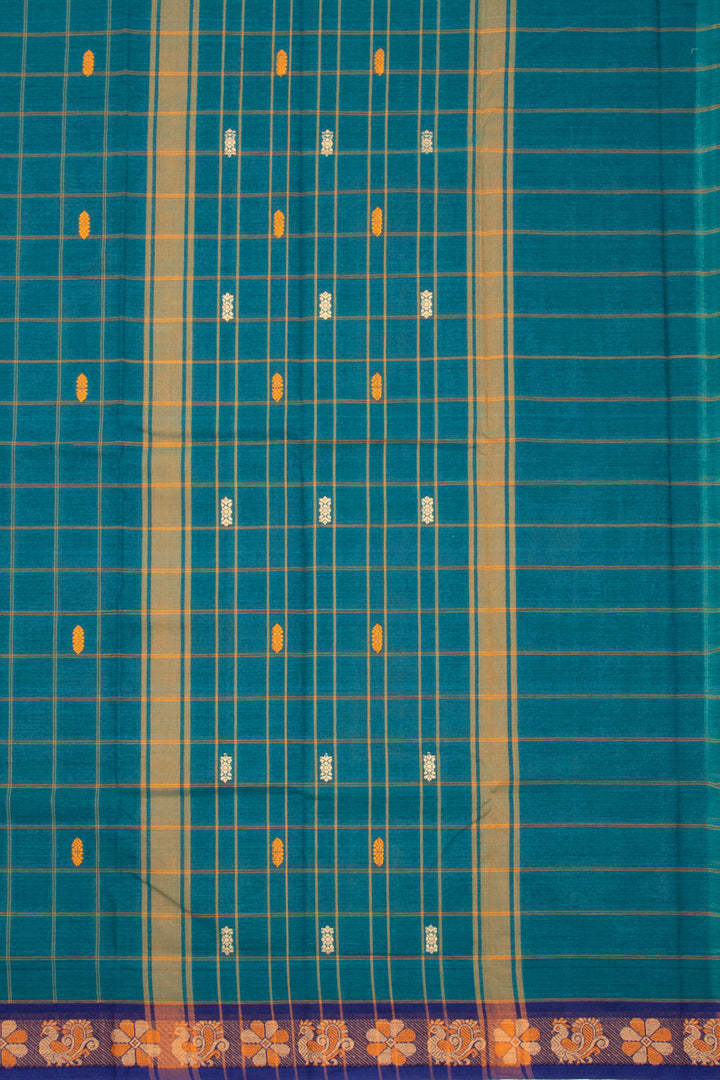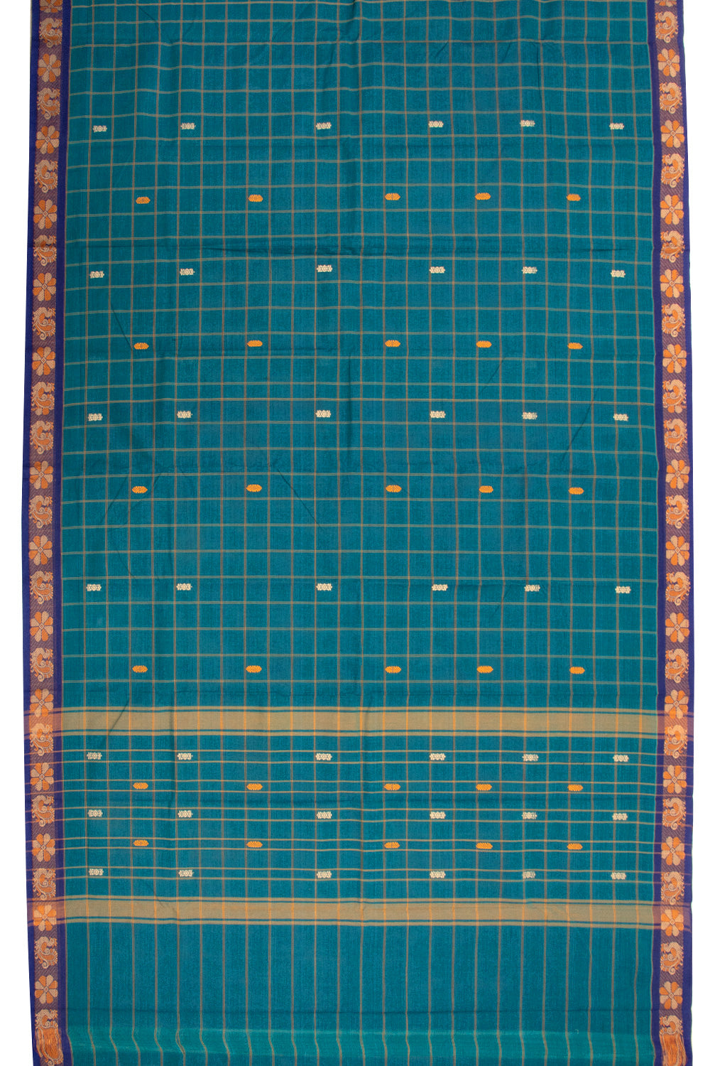 Experience the traditional beauty and elegance of the Blue Handloom Chettinad Cotton Saree. Handwoven with care and attention to detail, this saree showcases the rich heritage of Chettinad. Made from 100% cotton, it is lightweight and comfortable to wear, making it the perfect choice for any occasion.