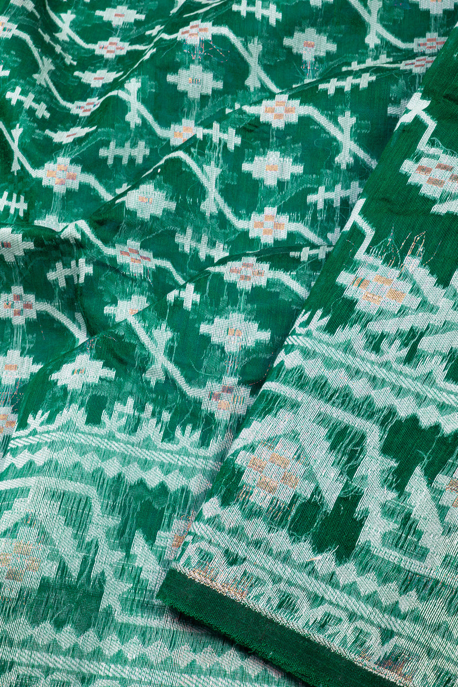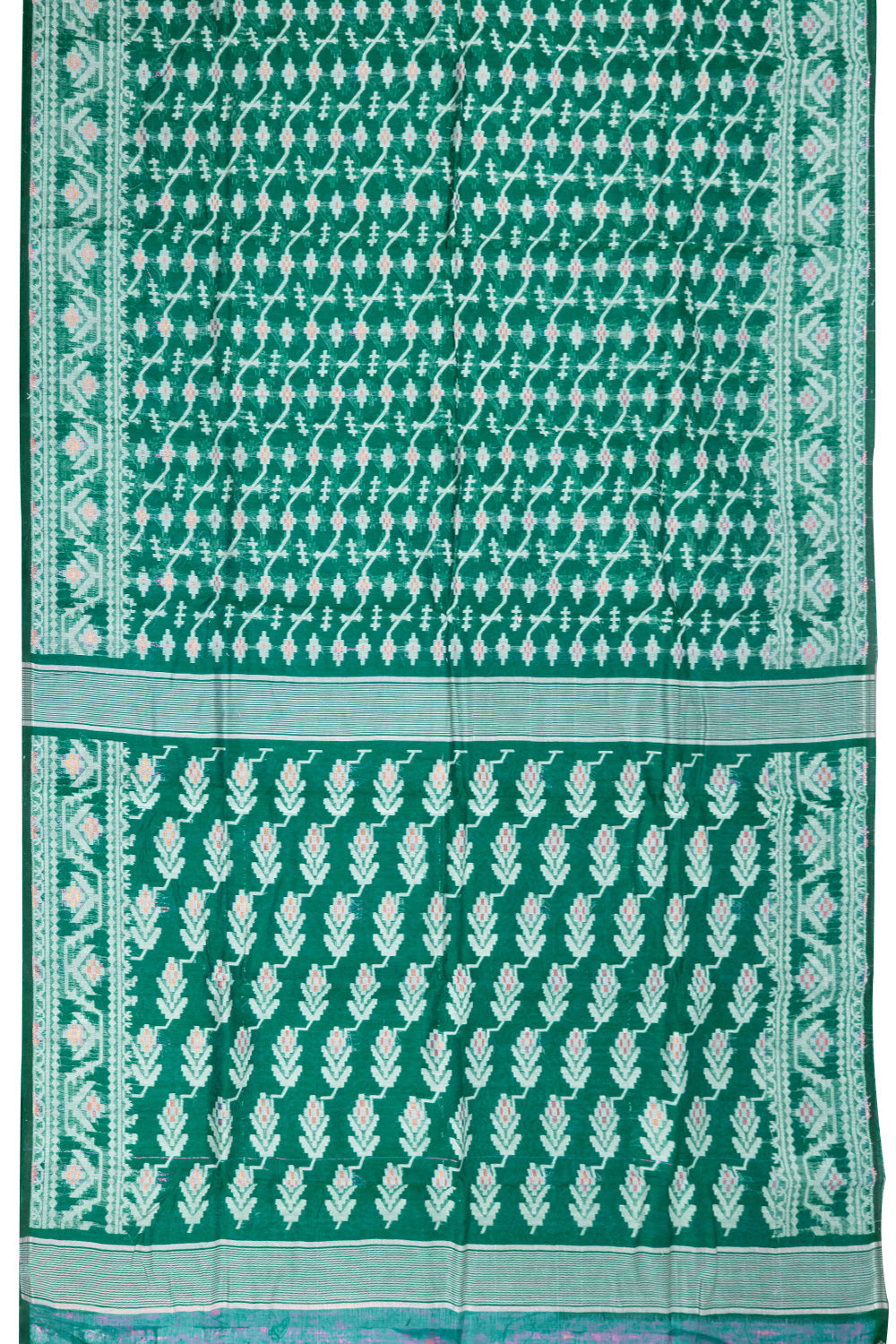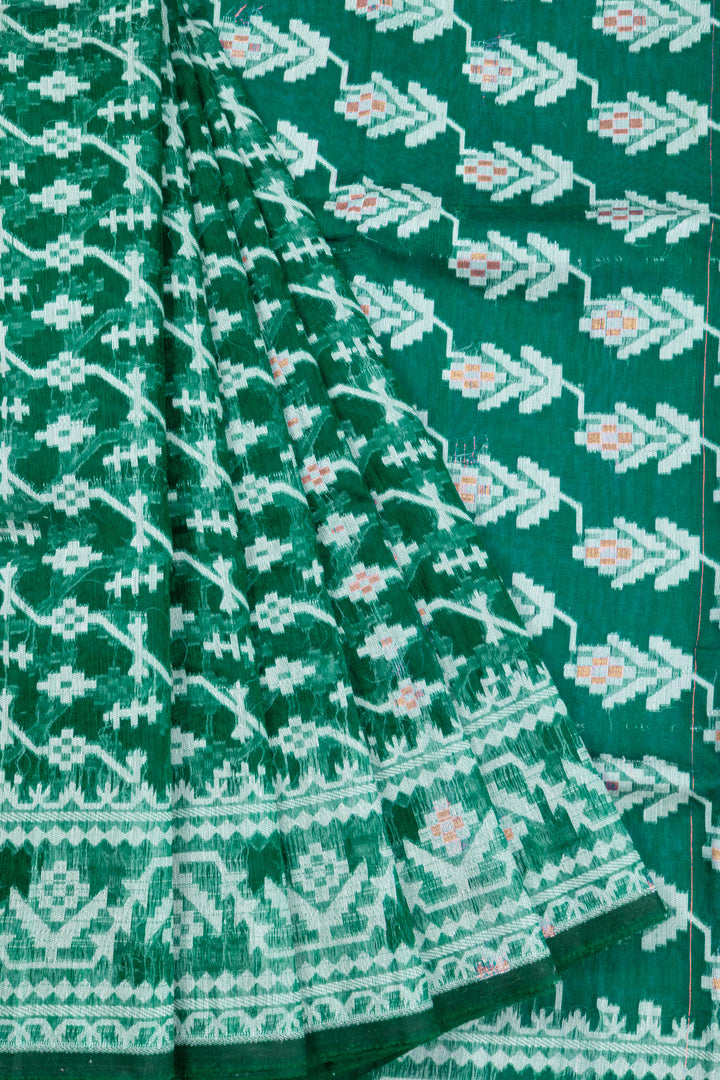 Green Handloom Jamdani Style Cotton Saree 10072423