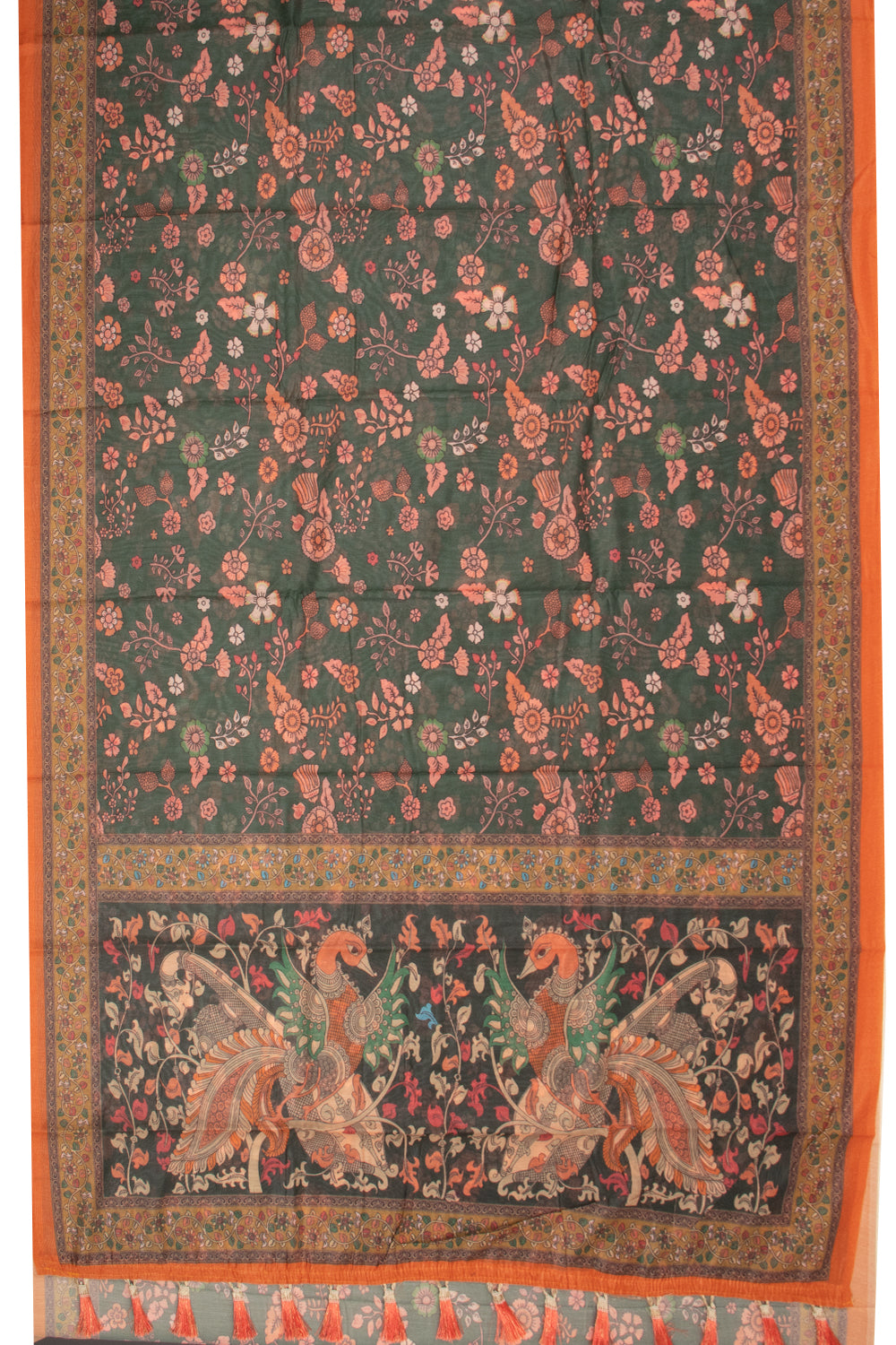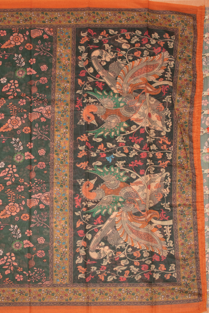 Green Kalamkari Printed Malai Cotton Saree 10074686