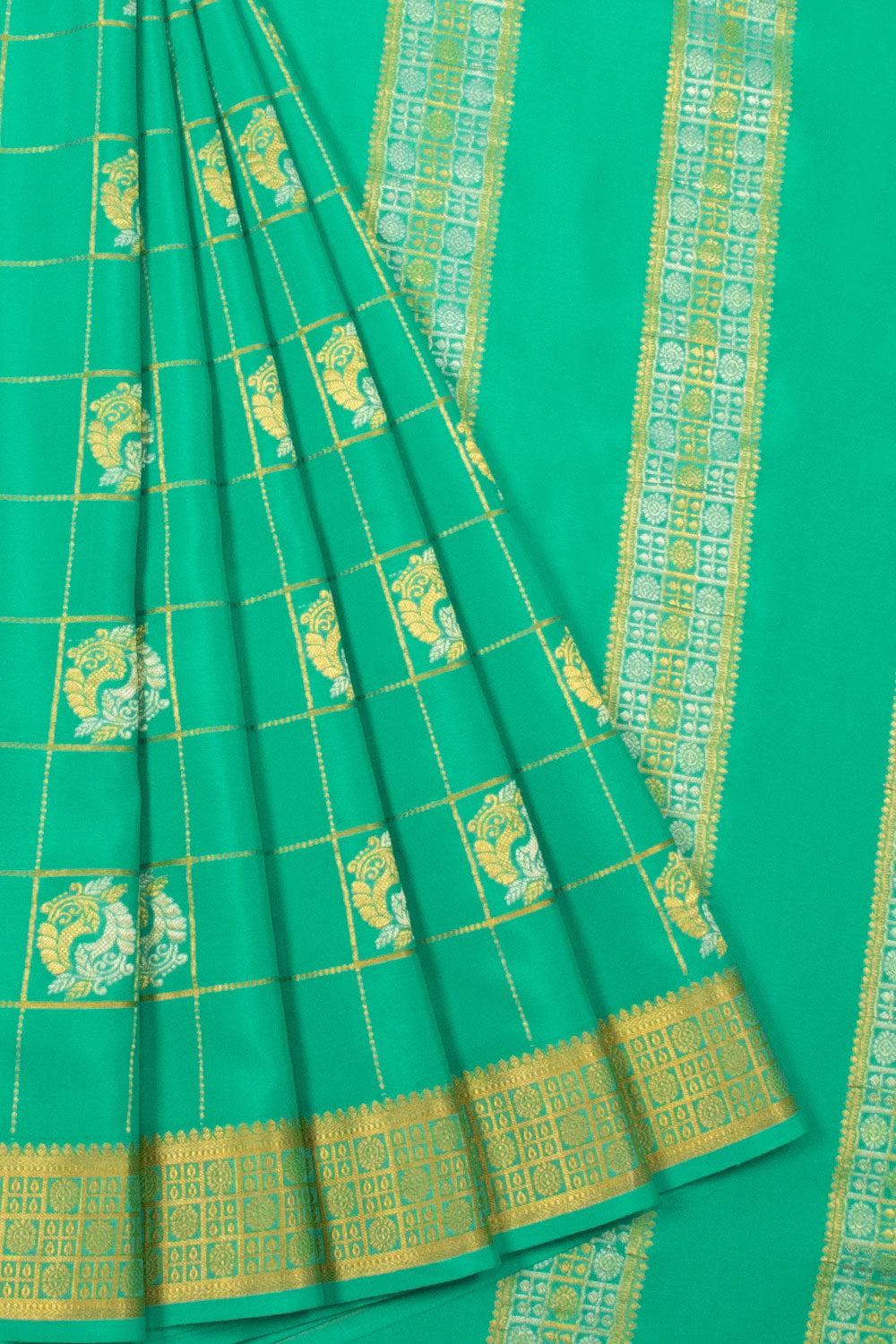 Step into elegance with this Green Mysore Crepe Silk Saree. Crafted from soft, flowing crepe silk, it offers a graceful drape that flatters every silhouette. The vibrant green shade brings a fresh and sophisticated touch, perfect for festive occasions and special events. Combine comfort and timeless style effortlessly with this beautiful saree that ensures you stand out with confidence.