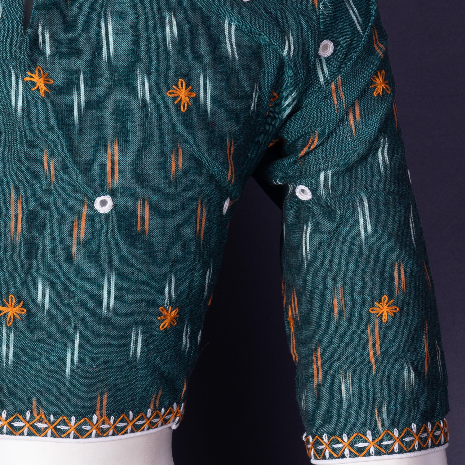 Green Pochampally Ikat Mirror Work Cotton Blouse 10074521