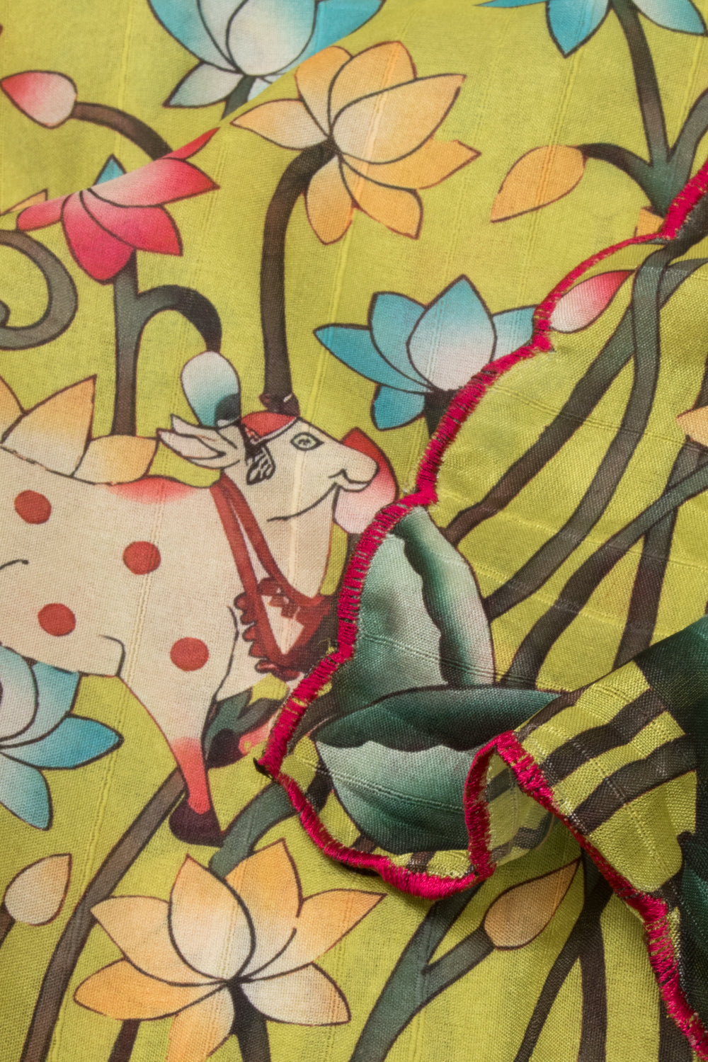 Green Printed Kalamkari Semi Tussar Silk Saree 10074915