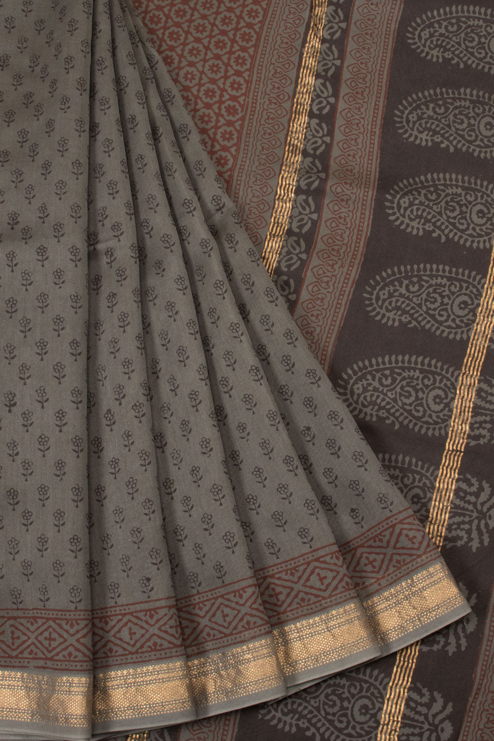 Grey Bagh Printed Silk Cotton Saree 10064507