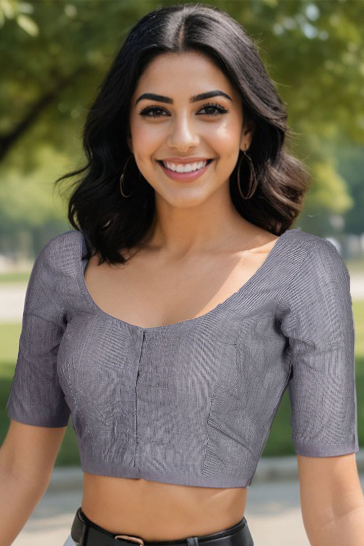 Grey Handcrafted Cotton Solid Blouse 10073227
