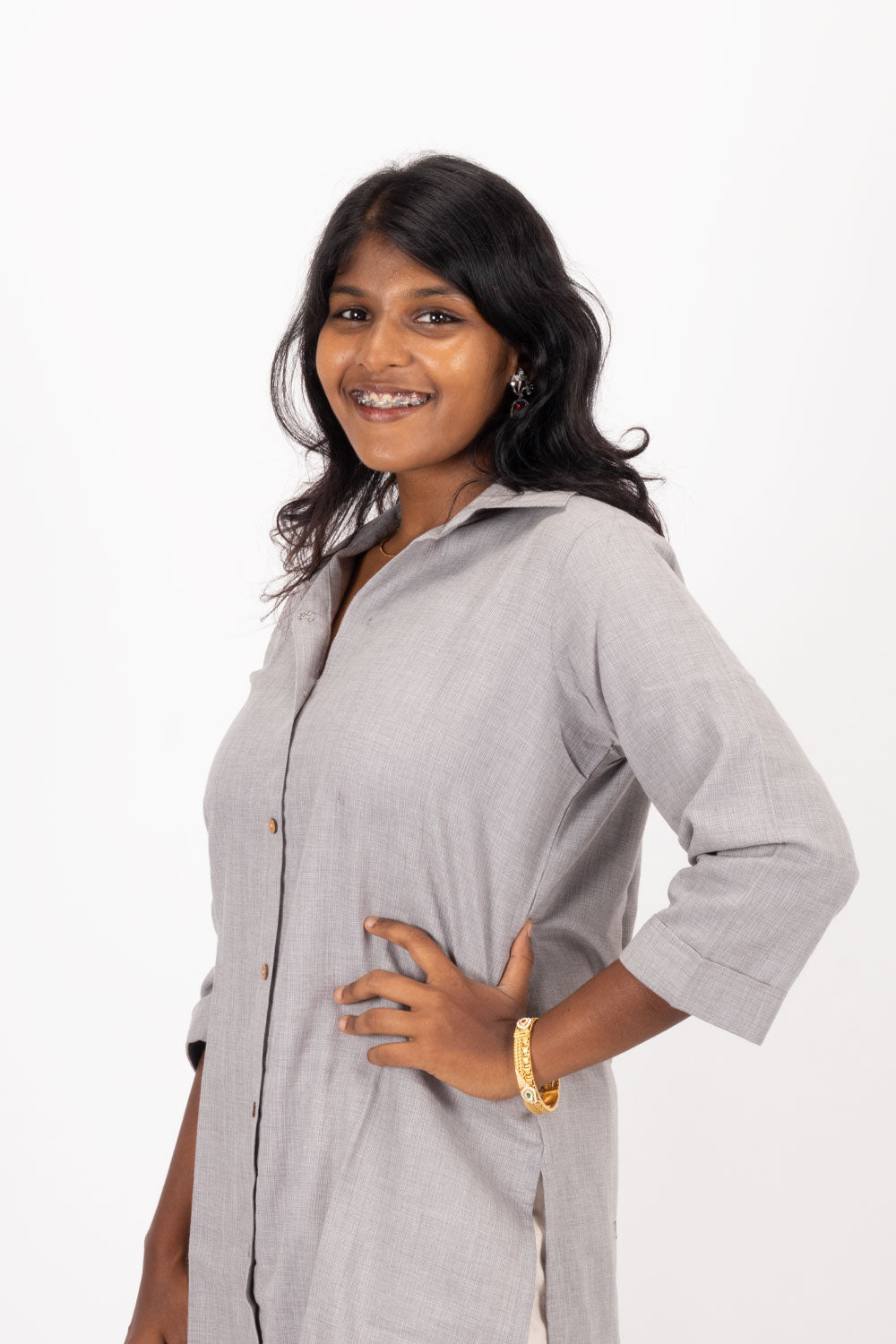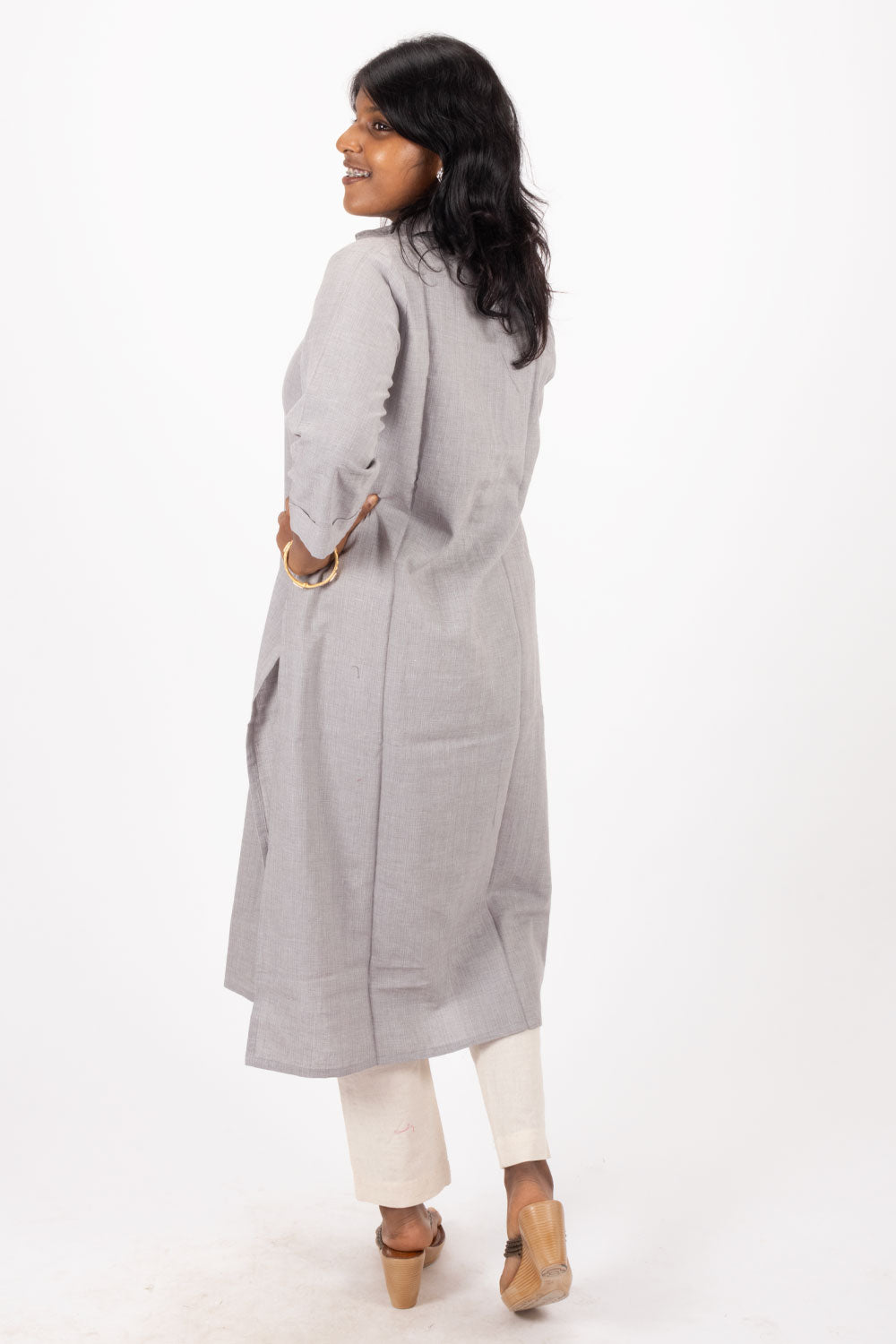 Elevate your casual wardrobe with this Grey Handcrafted Solid Style Oxford Cotton Kurta. Crafted from breathable Oxford cotton, it offers comfort and durability for everyday wear. The meticulous handcrafted details add a touch of elegance, making it perfect for pairing with jeans for a stylish, effortless look. Ideal for those who appreciate quality and timeless style.