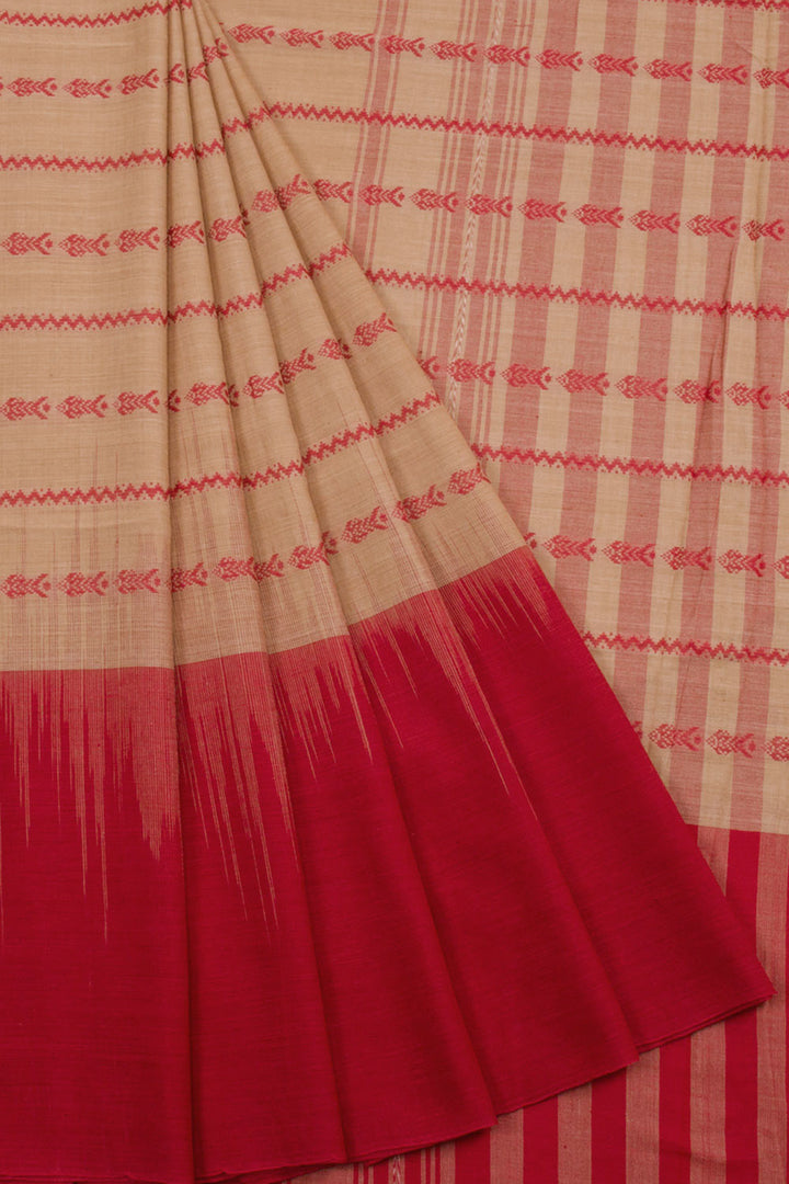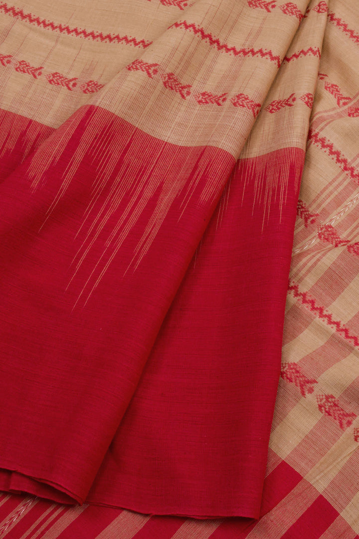 Beige Handloom Dhaniakhali Cotton Saree 10062599