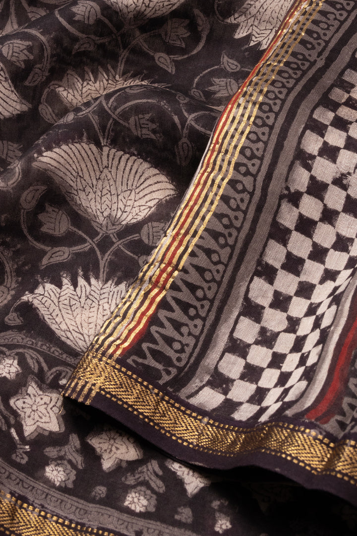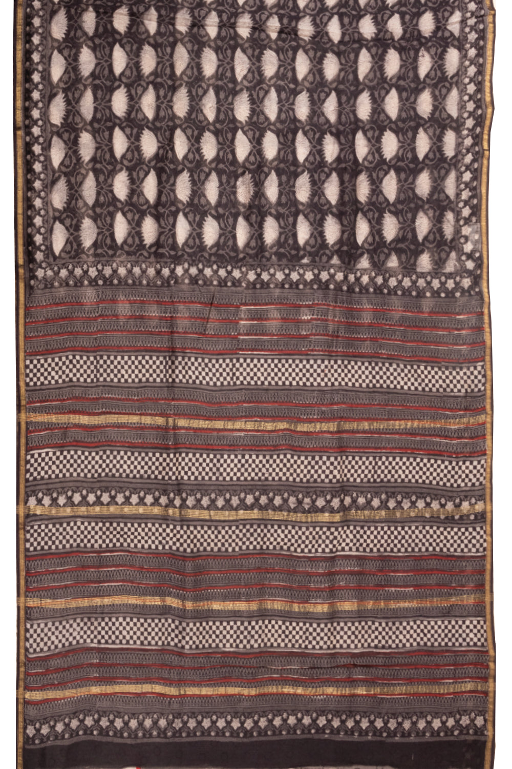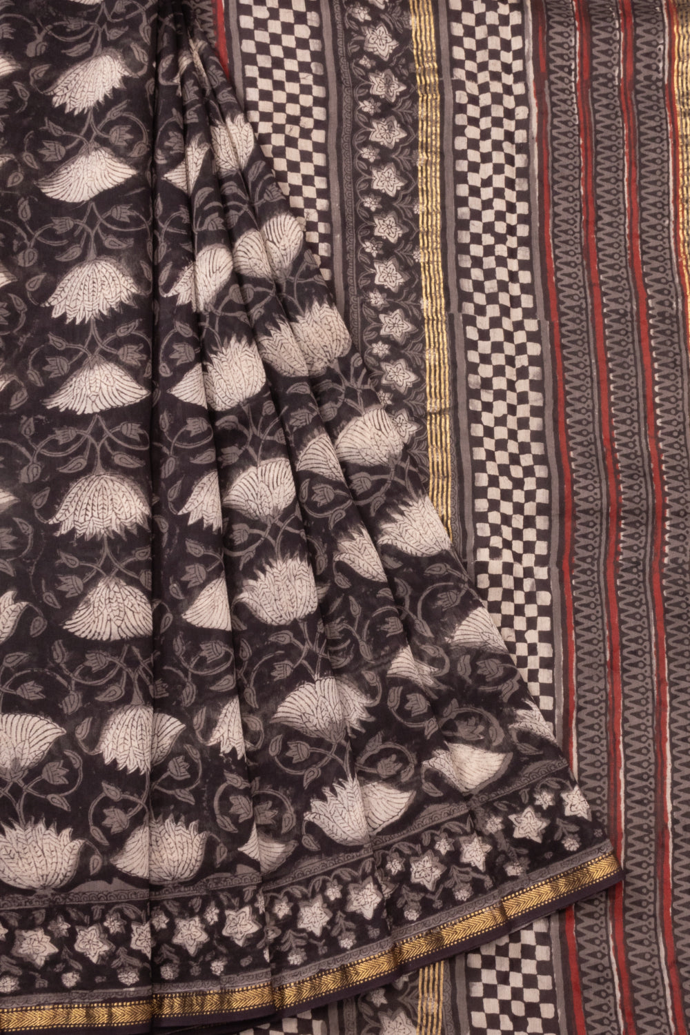 Grey Jahota Printed Silk Cotton Saree 10072951