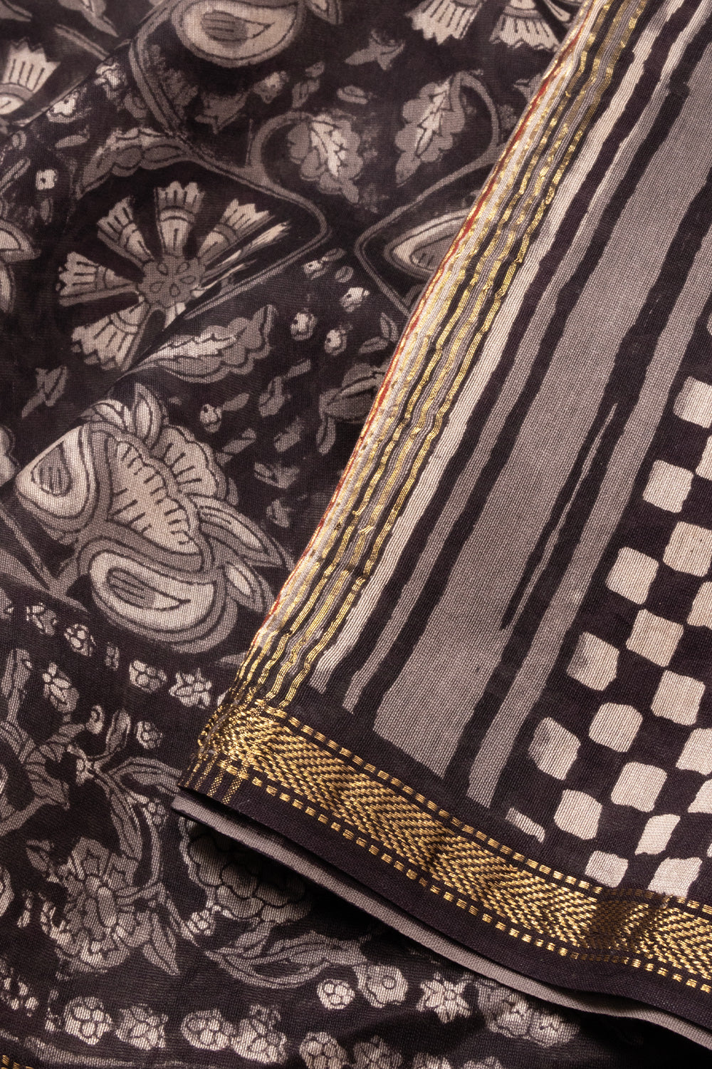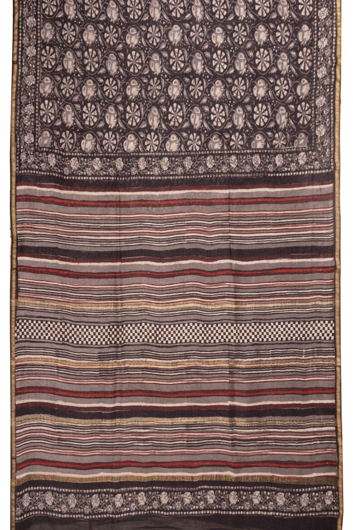 Grey Jahota Printed Silk Cotton Saree 10072955