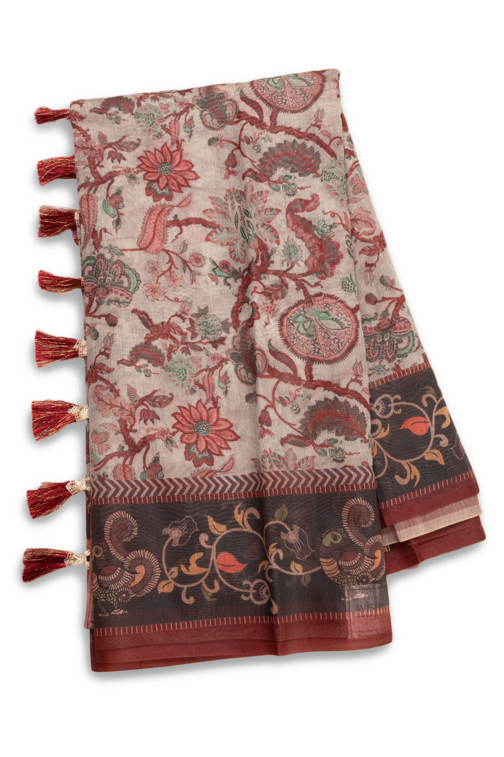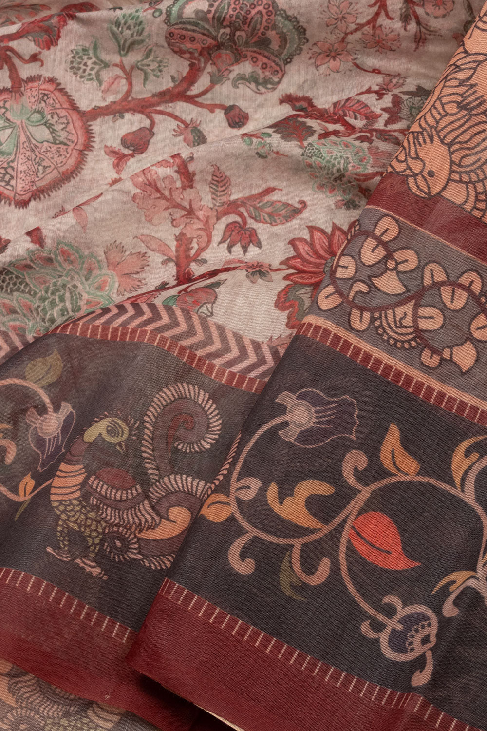 Grey Kalamkari Printed Malai Cotton Saree 10074695