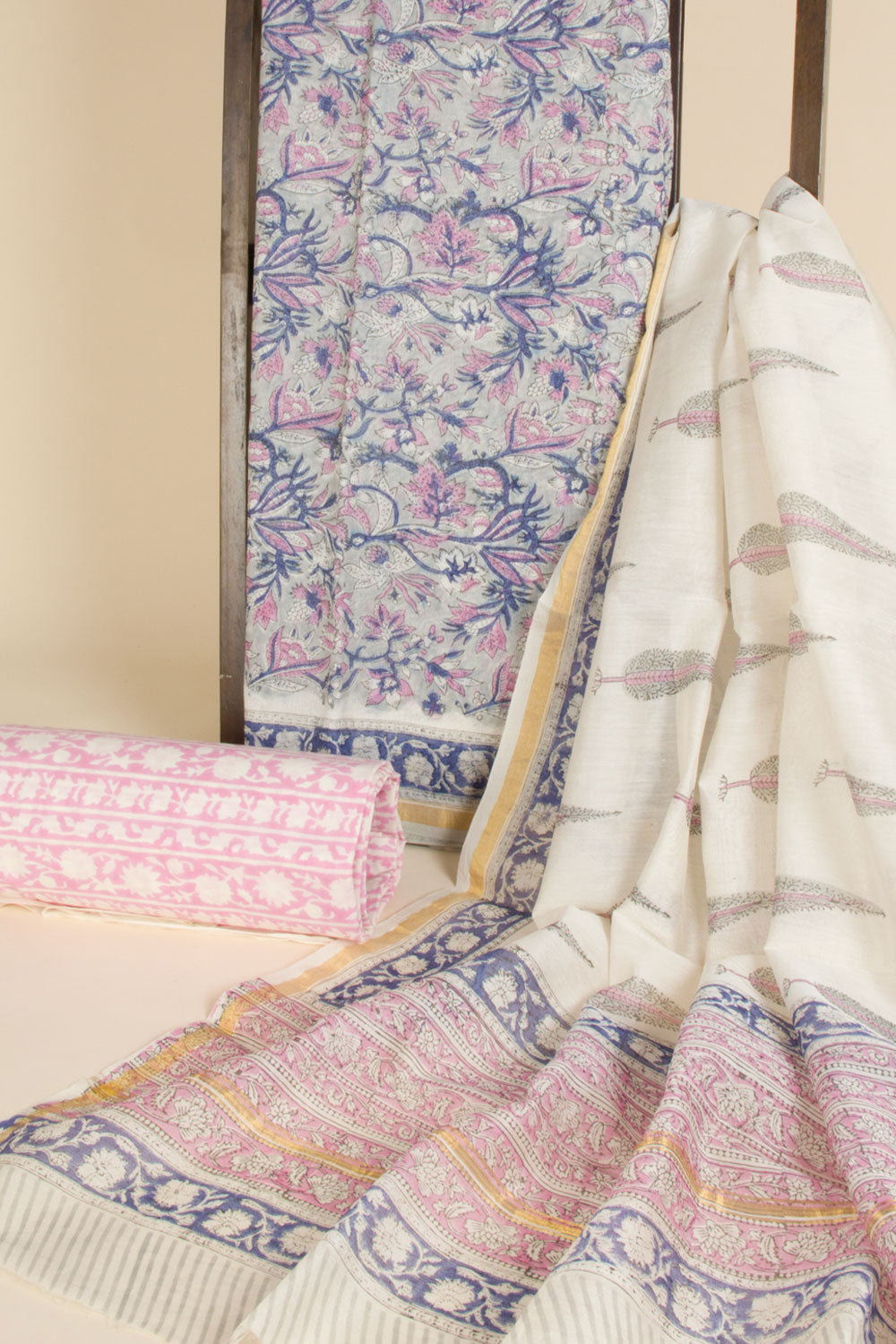 Grey Vanaspathi Printed Cotton 3-Piece Salwar Suit Material 10067446