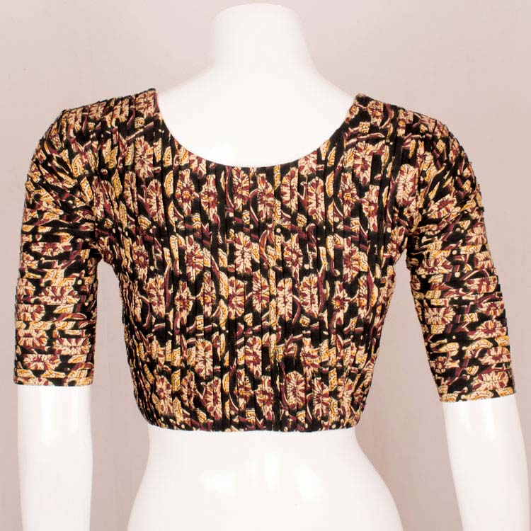 Hand Block Printed Cotton Blouse with Pin tuck Stitches and Side Zip 10048213 - S