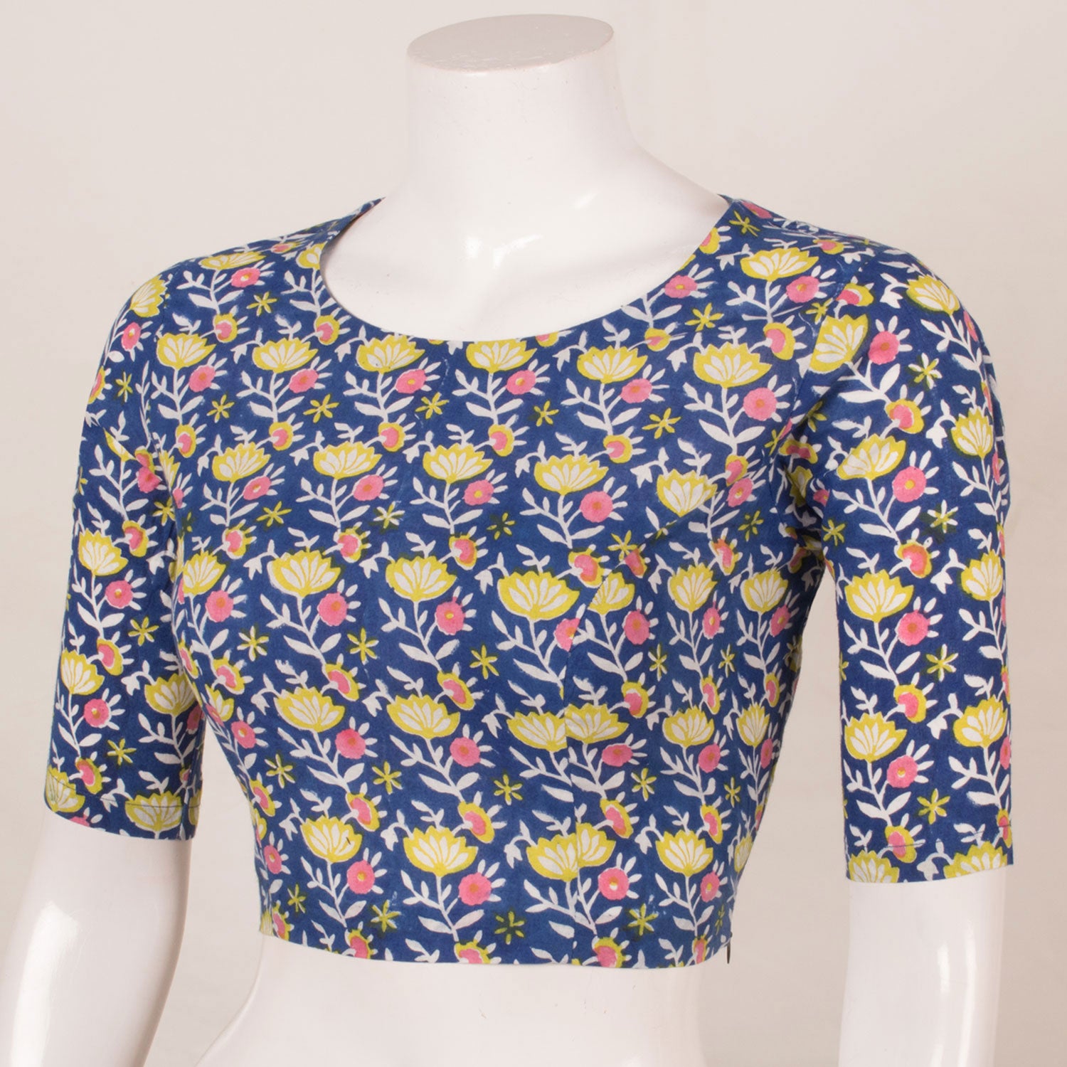 Hand Block Printed Princess cut Cotton Blouse with Side Zip 10053572 - 38
