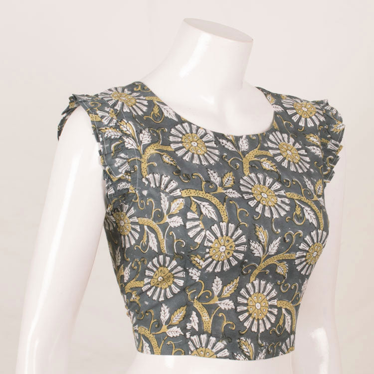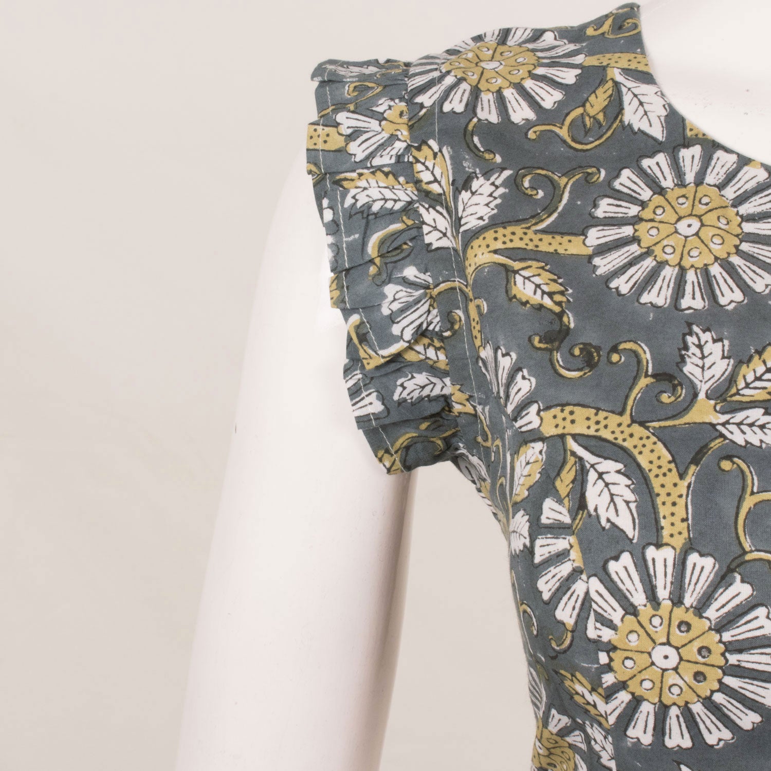 Hand Block Printed Princess Cut Cotton Blouse with Cap Sleeve and Side Zip 10053576