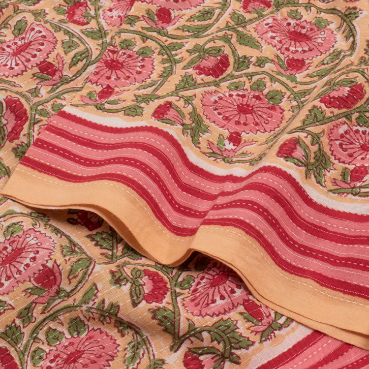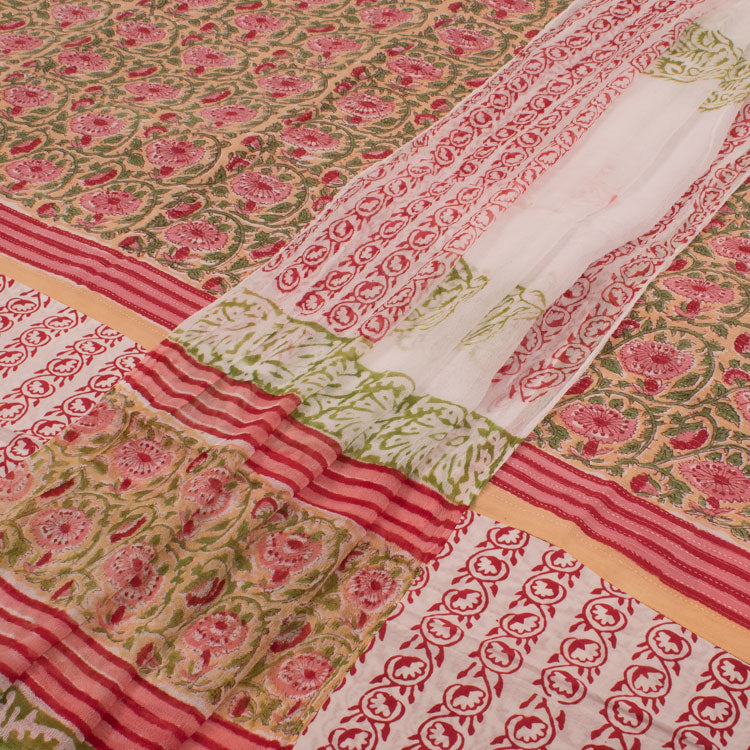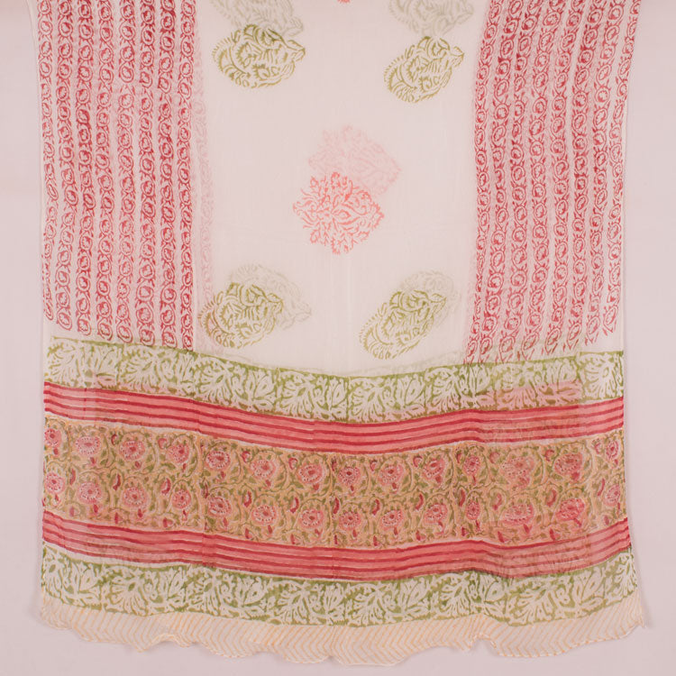 Hand Block Printed Cotton 4-Piece Salwar Suit Material with Chiffon Dupatta 10034724