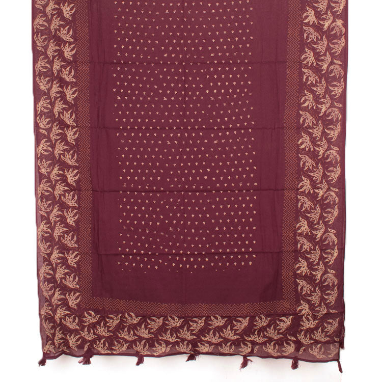 Hand Block Printed Cotton 3-Piece Salwar Suit Material with Floral Designs 10052729