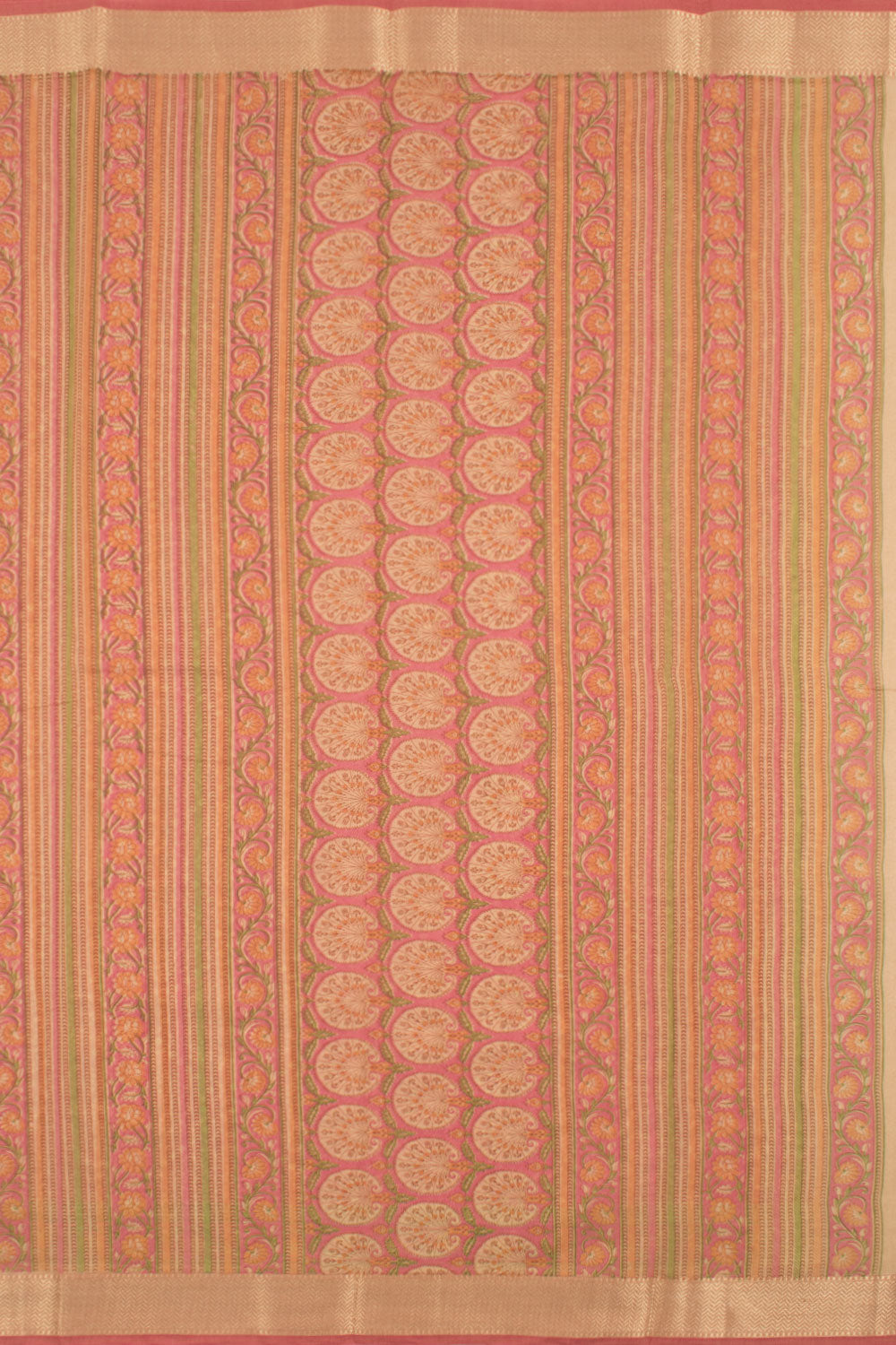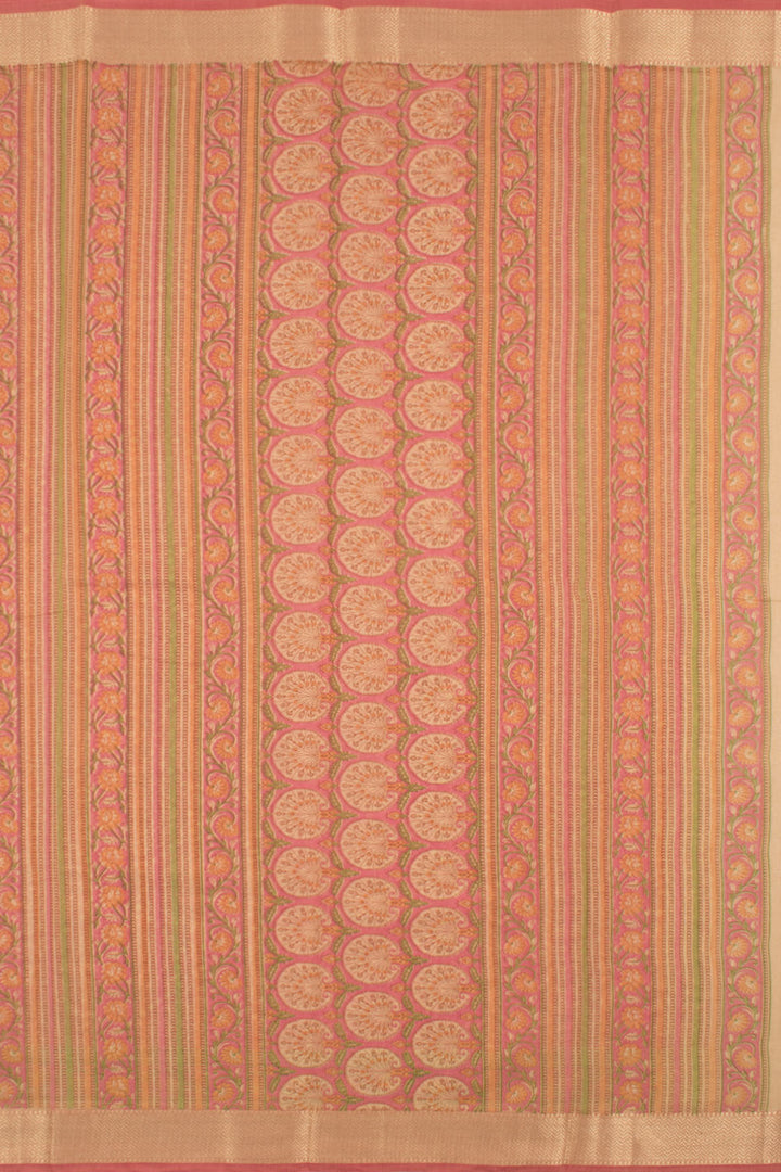 Hand Block Printed Silk Cotton Saree with Floral Motifs and Zari Border 10059298