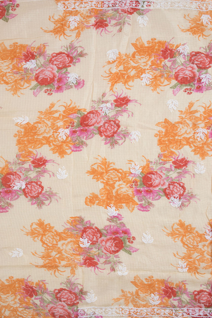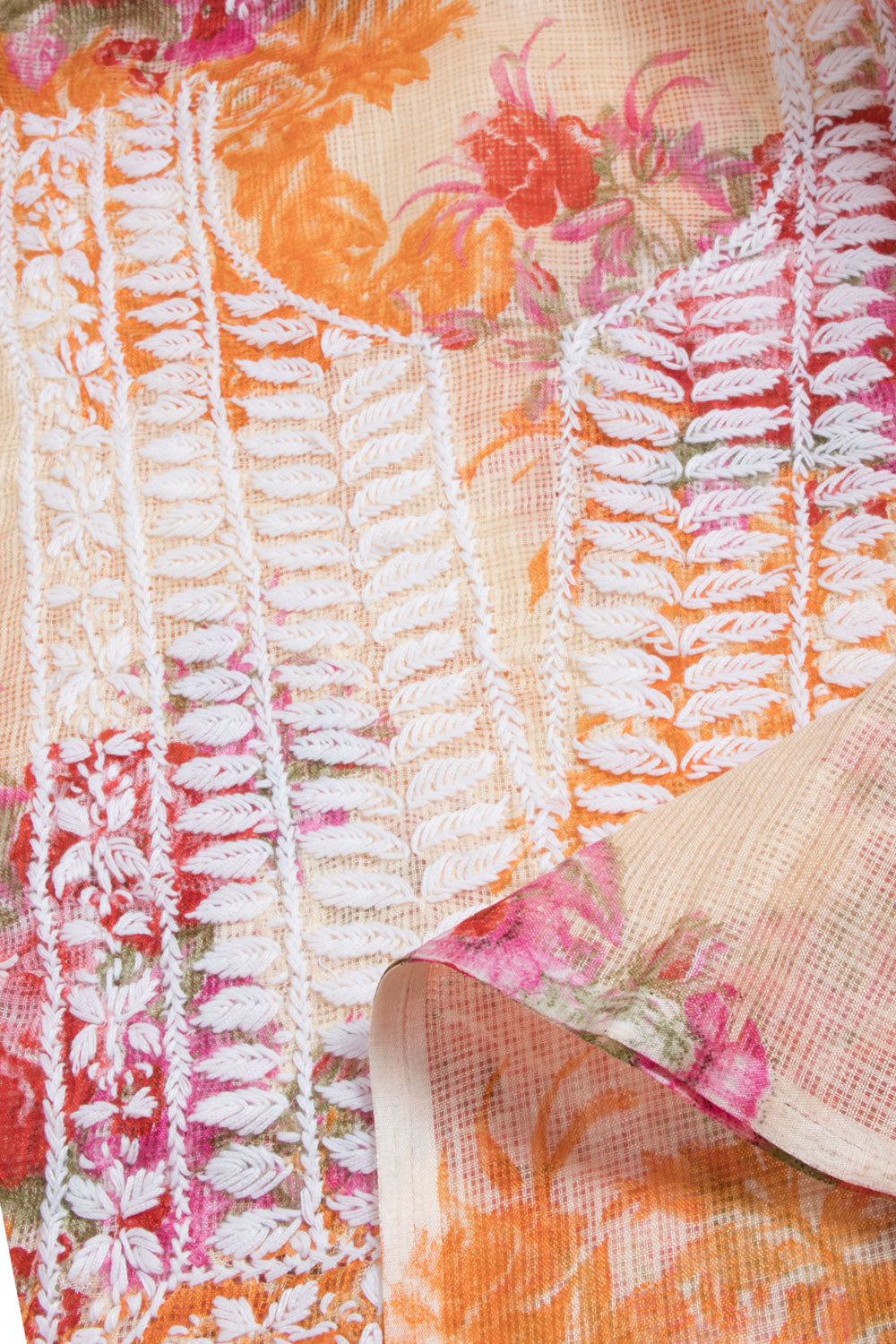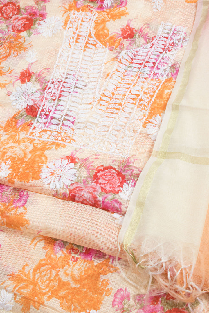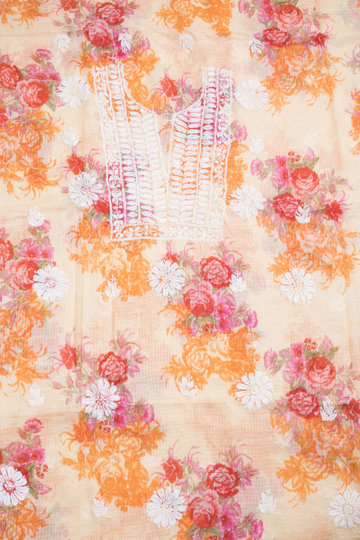 Hand Embroidered Chikankari Kota Cotton 2-Piece Salwar Suit Material with Organza Dupatta 10059384