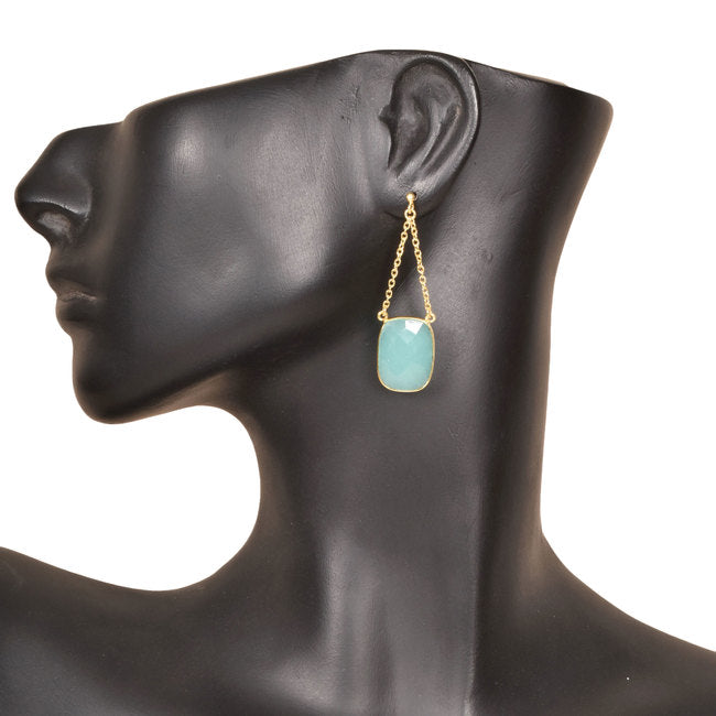 Hand Crafted Drop Double Chain Stone Earrings 10008777