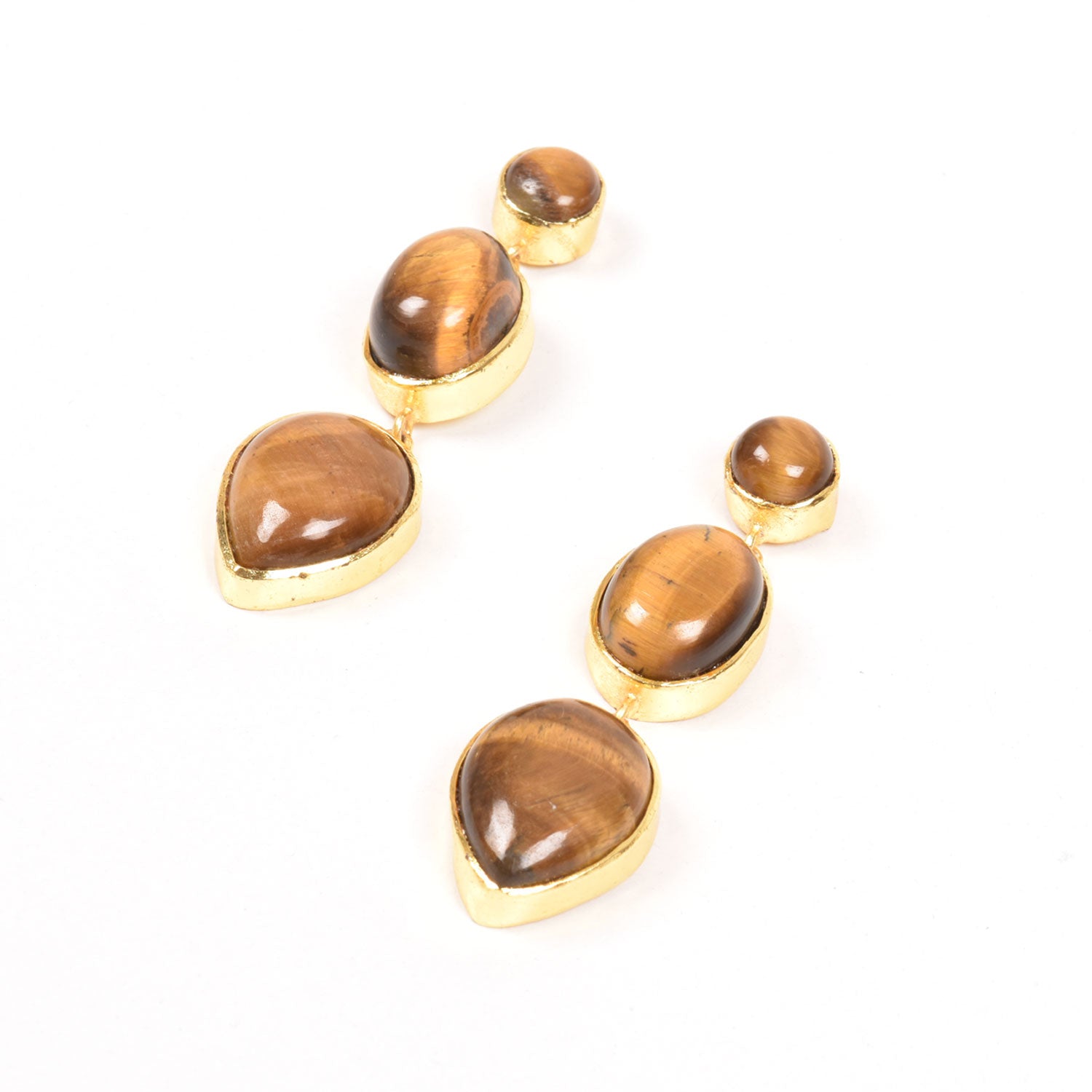 Gold Plated Alloy Metal Tri Natural Stone Earring 10021847