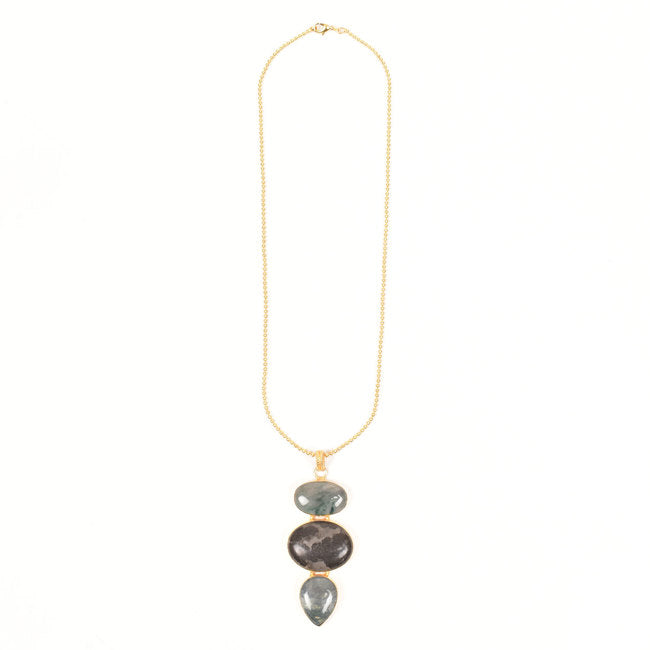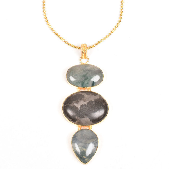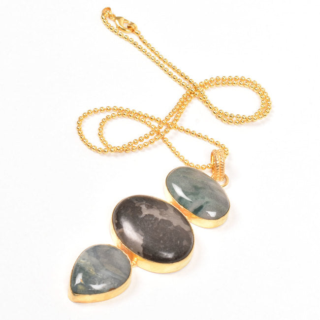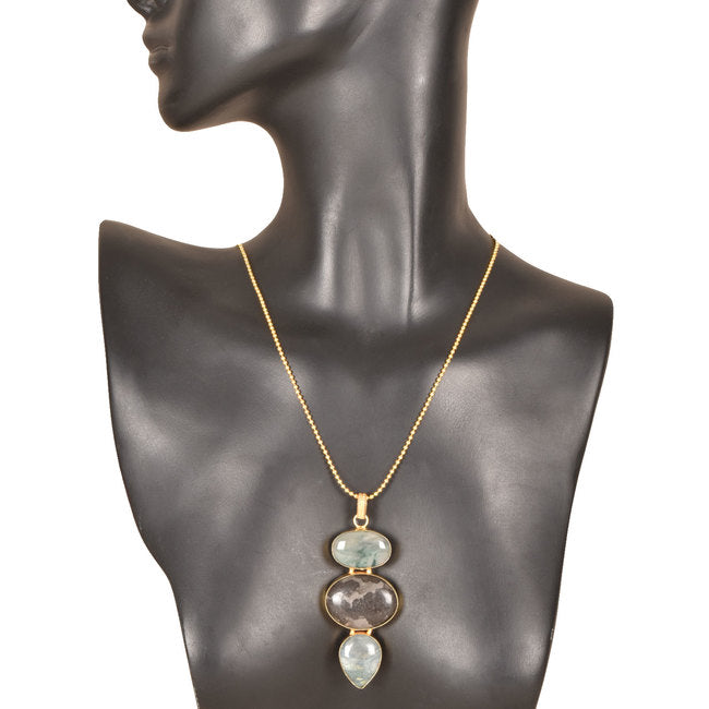 Handcrafted Natural Stone Gold Plated Alloy Metal Necklace 10024729p