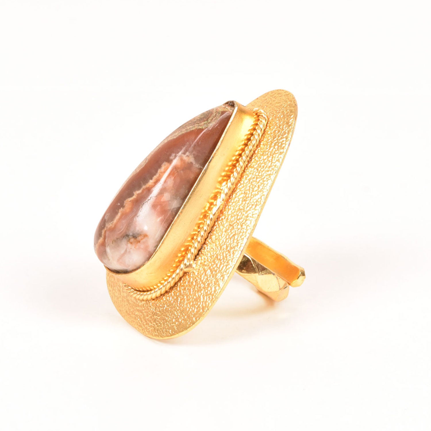 Adjustable Natural Stone Gold Plated Alloy Metal Single Stone Ring 10022161