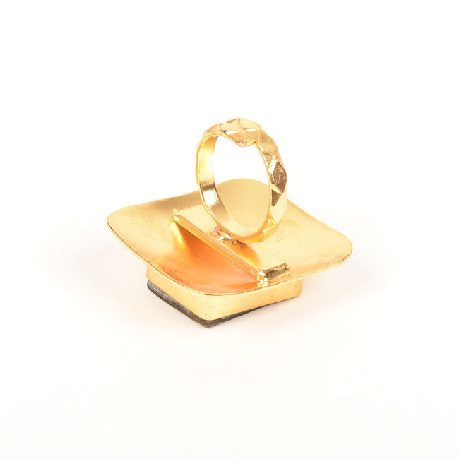Adjustable Natural Stone Gold Plated Alloy Metal Single Stone Ring 10022164