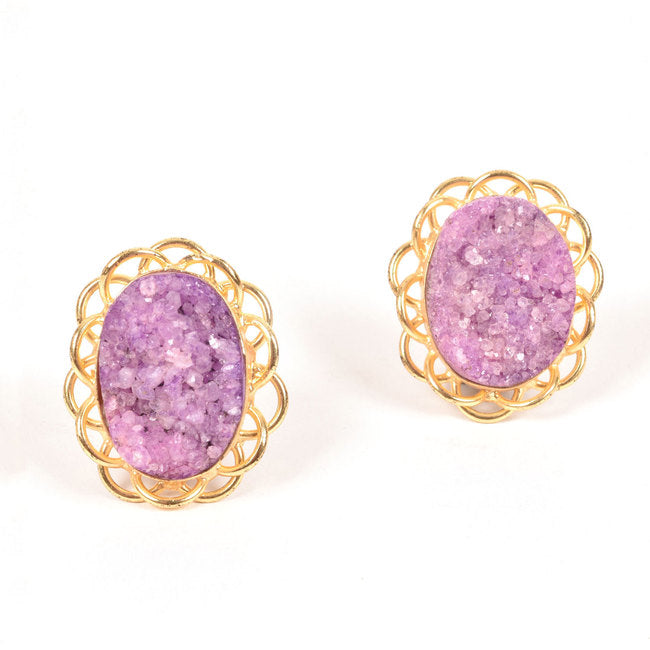 Gold Plated Alloy Metal Filigree Druzy Earring 10021858