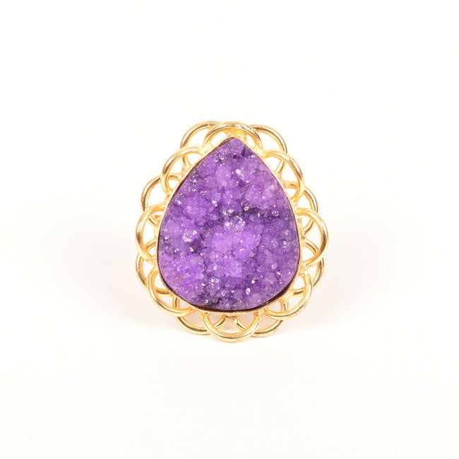 Adjustable Gold Plated Alloy Metal Druzy Ring 10022160