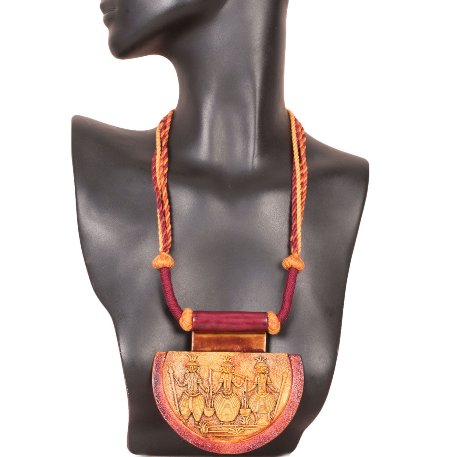 Hand Crafted Shalboni Ceramic Necklace With Thread Binding 10021802