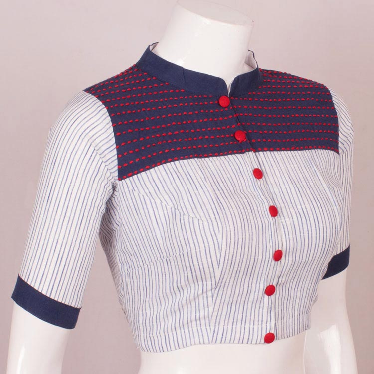 Handcrafted Cotton Blouse with Collar Neck and Stripe Design 10050910 - 36