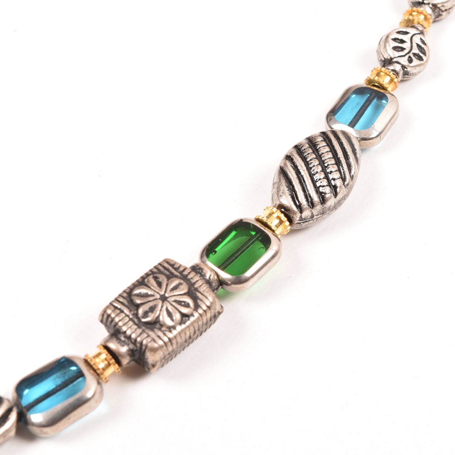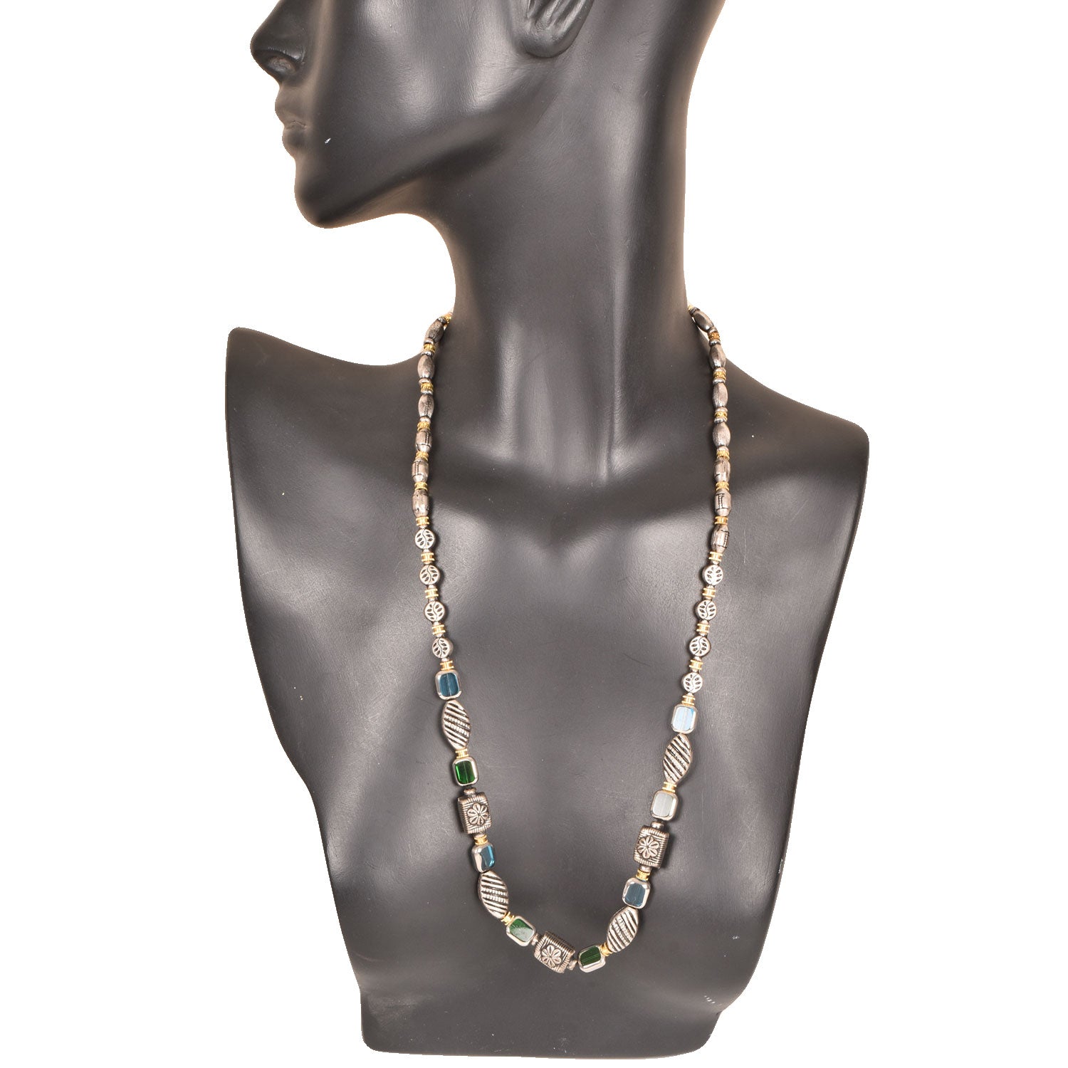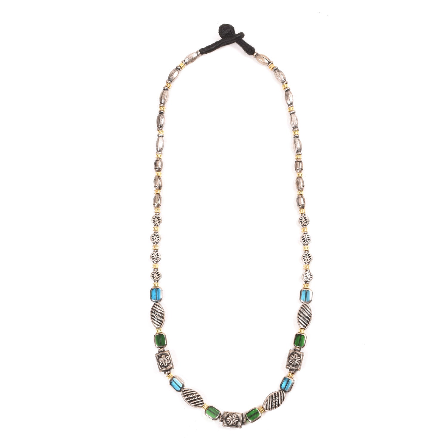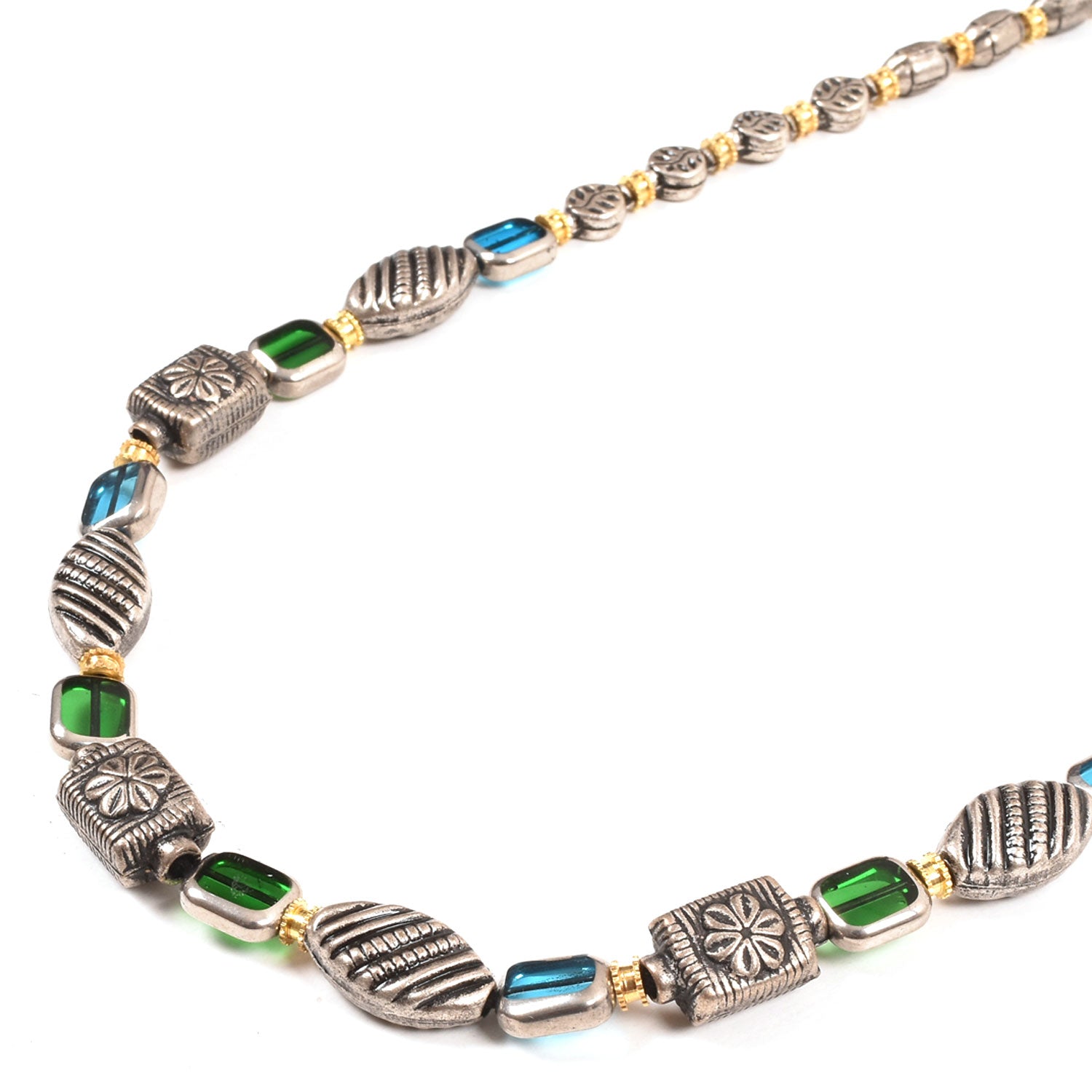 Handcrafted Silver Plated Copper Breads Necklace with Glass and Brass Beads 10012585p