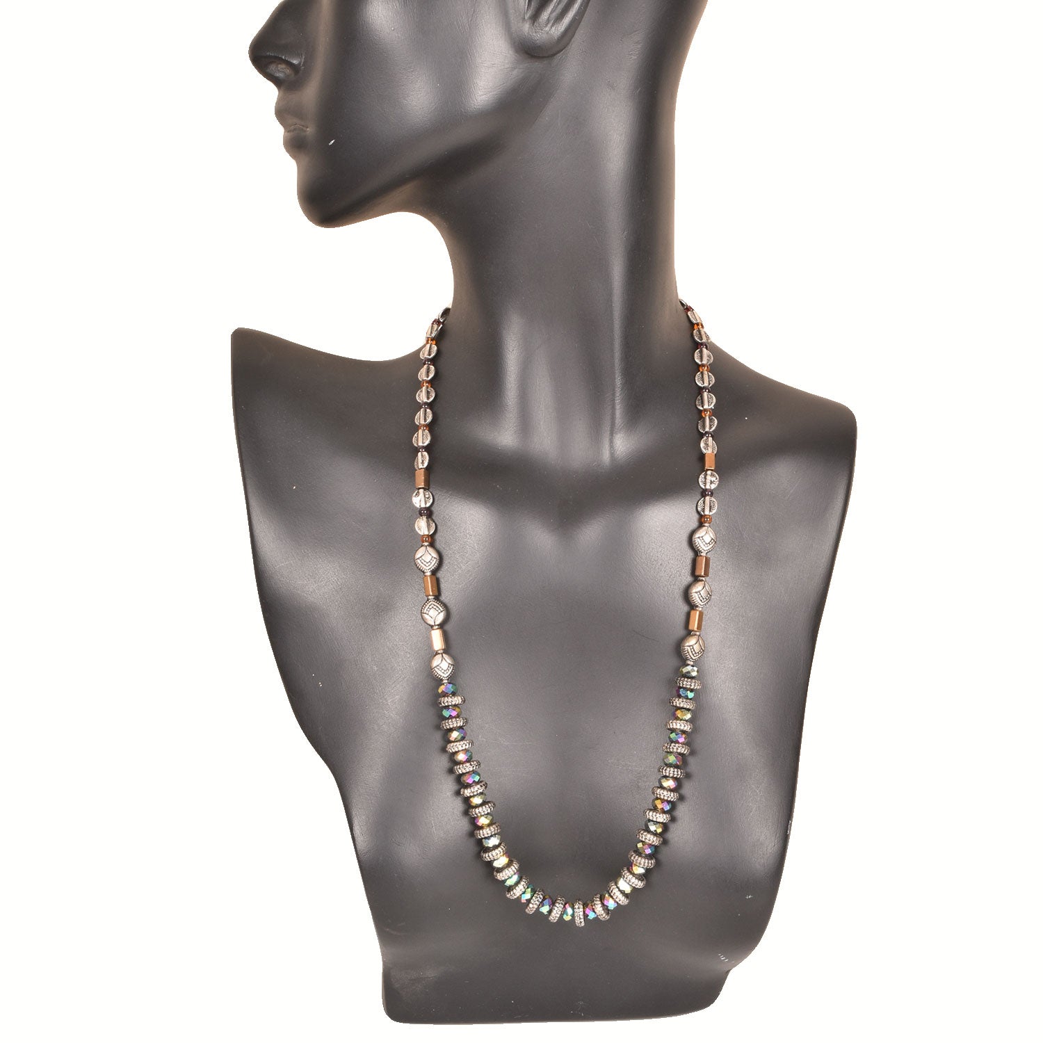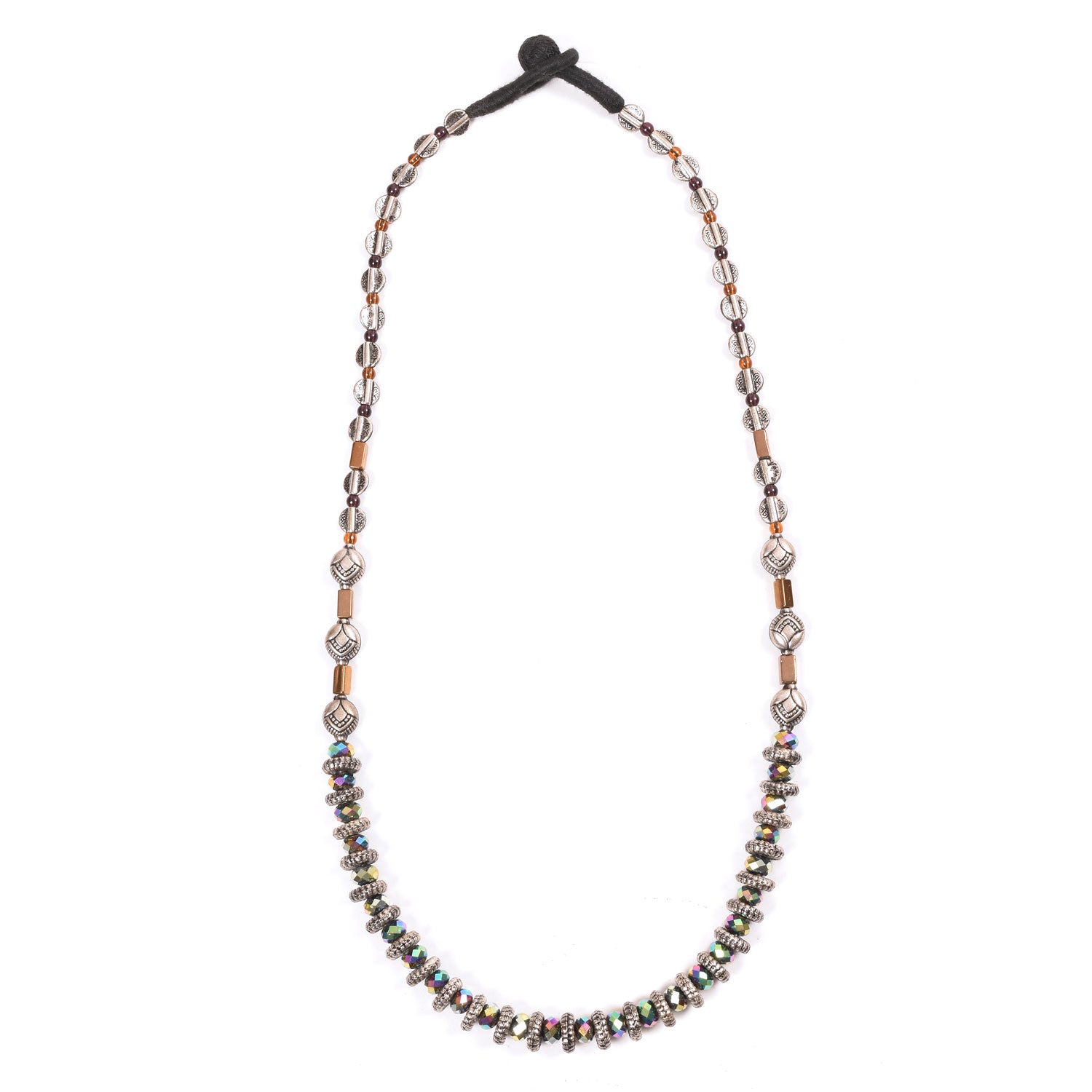 Handcrafted Silver Plated Copper Breads Necklace with Glass Beads 10012588