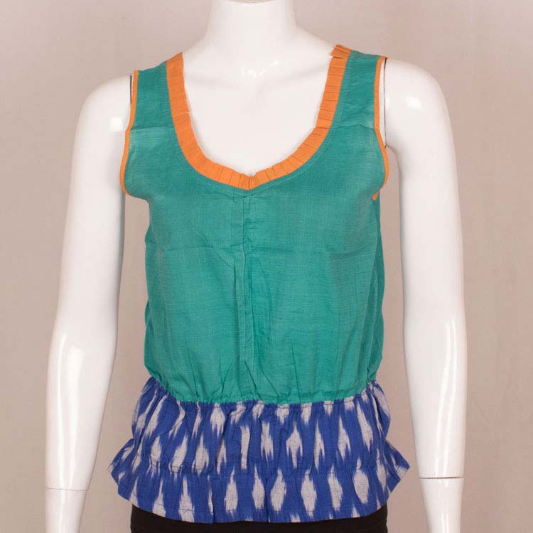 Handcrafted Sleeveless Ikat Cotton Top with Pintuck Neck 10048574 - 36