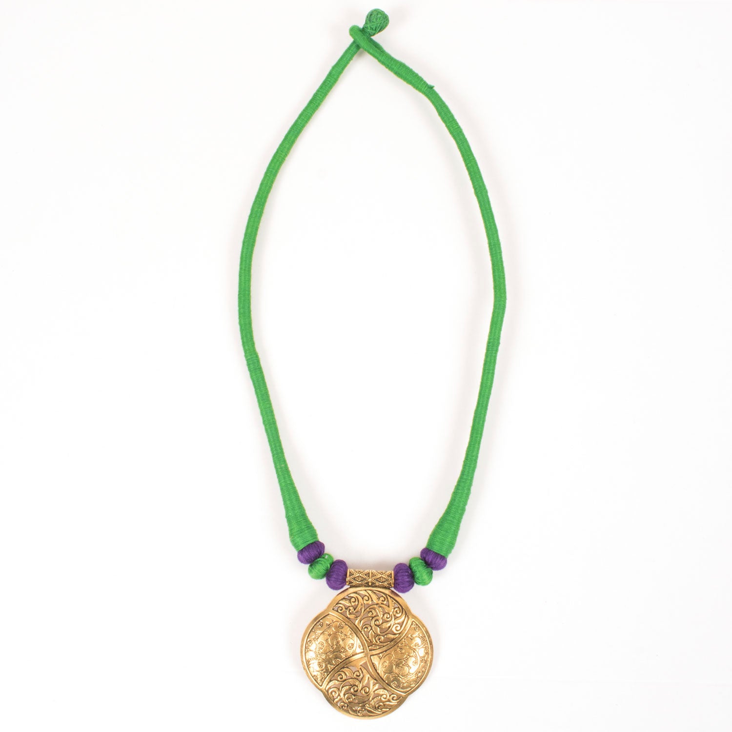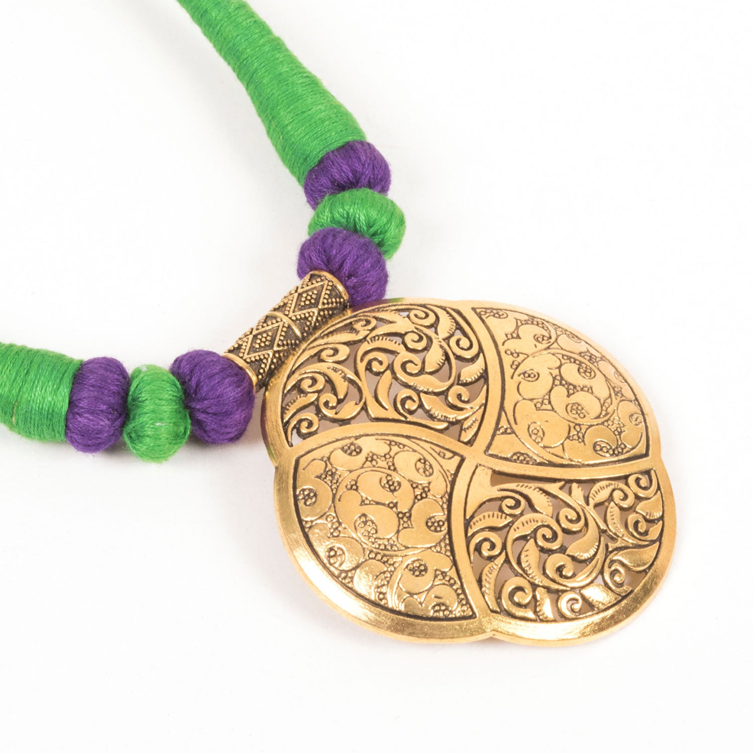 Handcrafted Silk Thread Fashion Necklace With Brass Pendant 10022121p