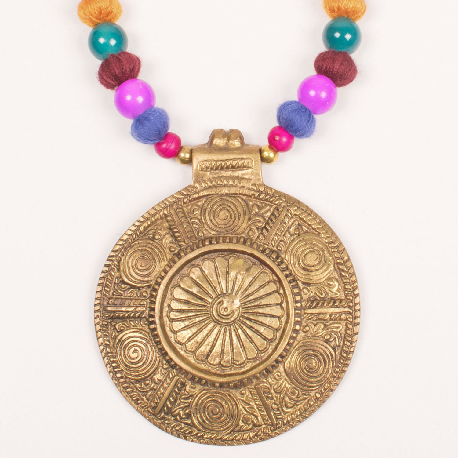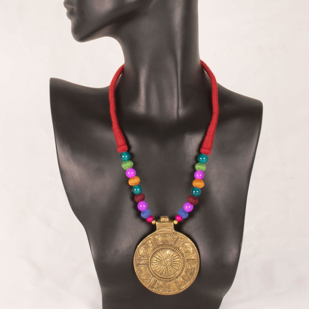Handcrafted Silk Thread Fashion Necklace With Brass Pendant 10054930
