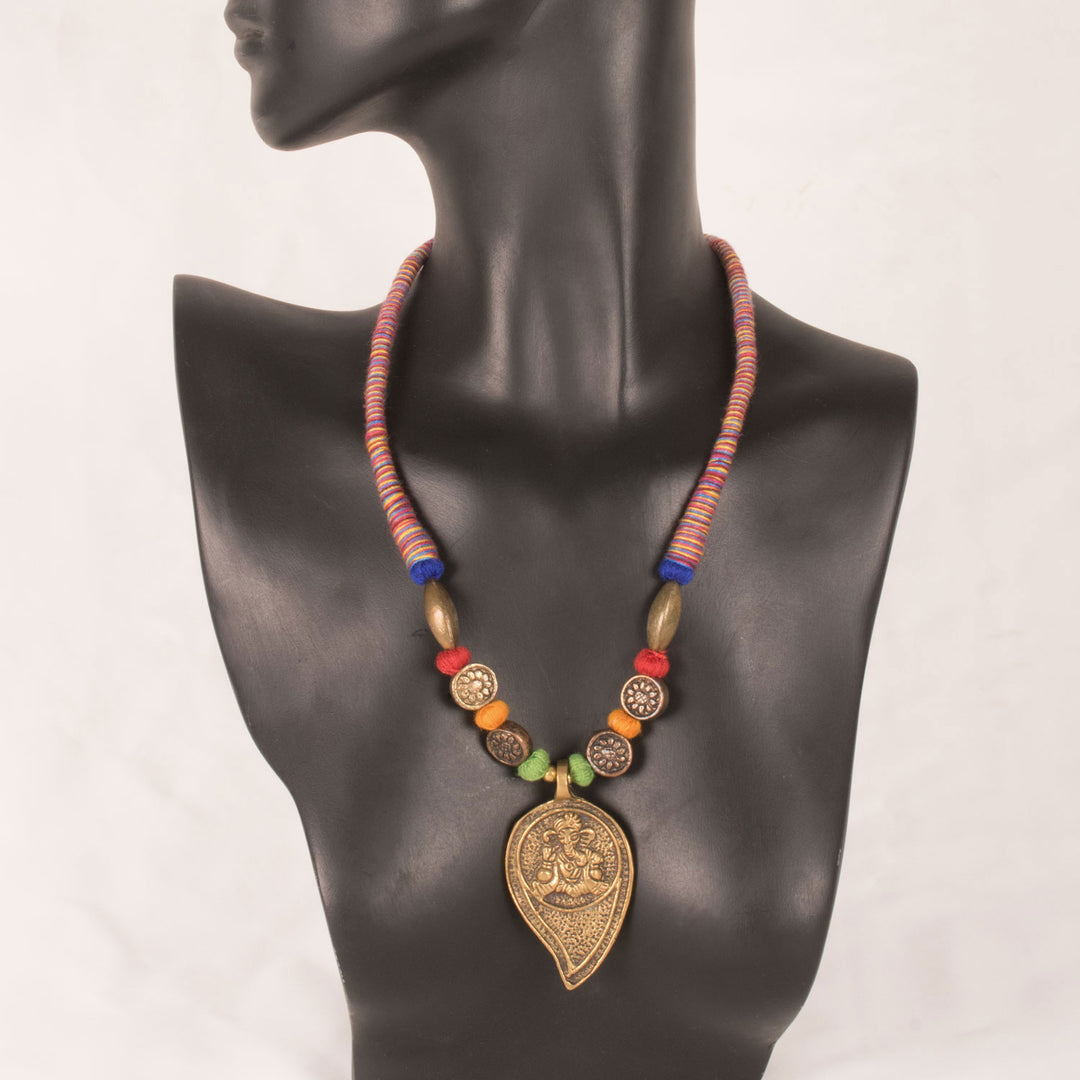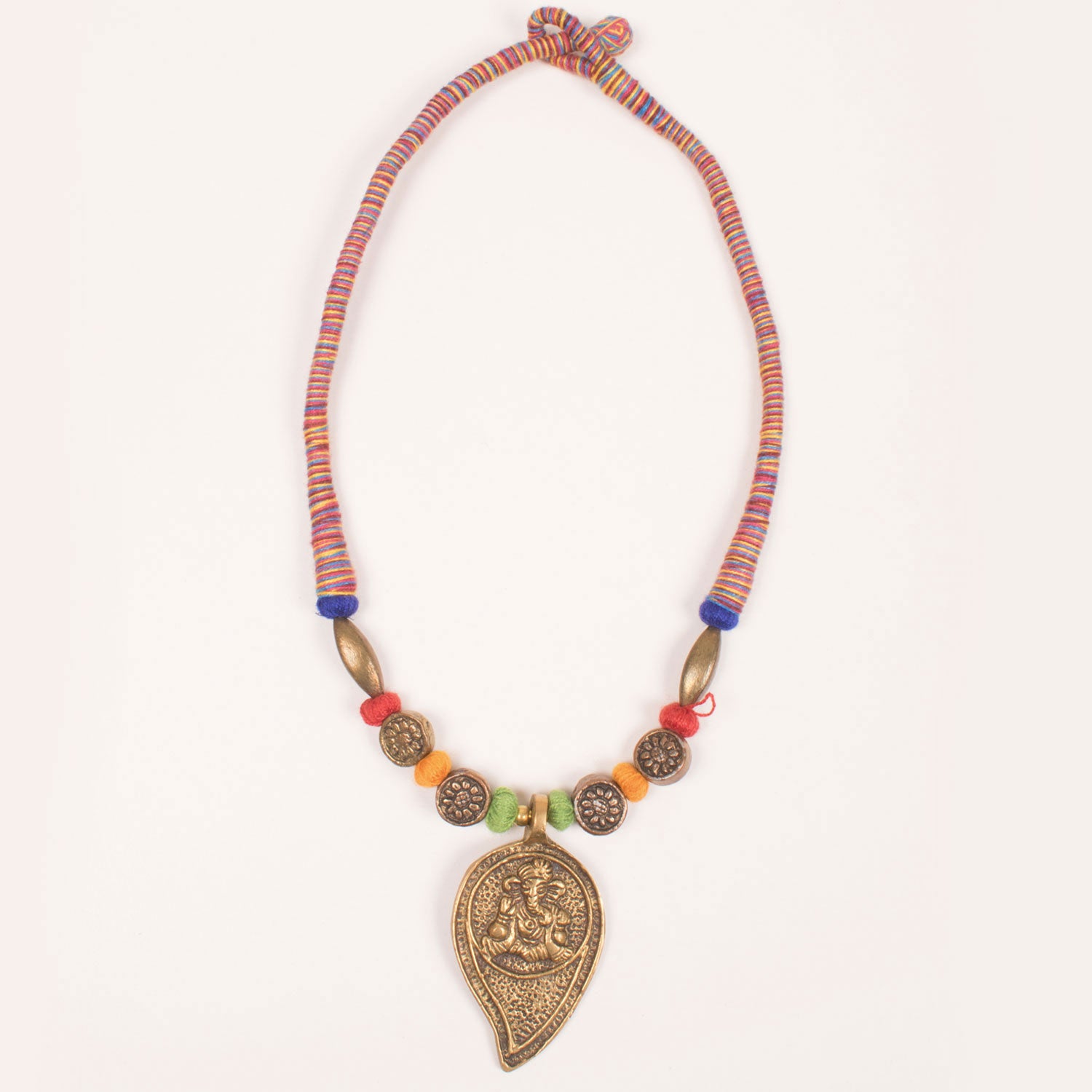 Handcrafted Necklace With Ganesha Brass Pendant 10054928