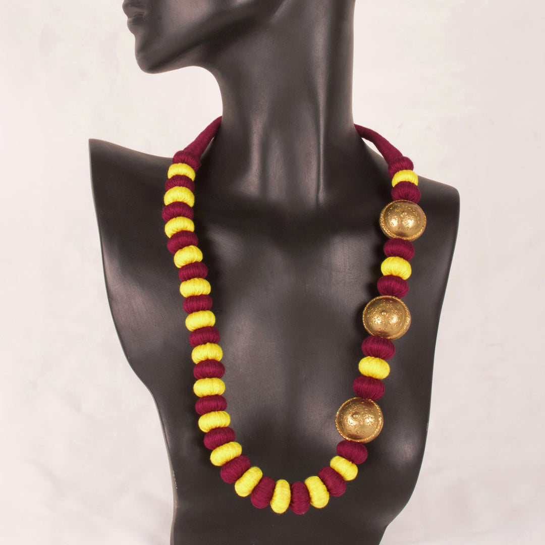Handcrafted Silk Thread Fashion Necklace With Thread And Brass Beads 10054927
