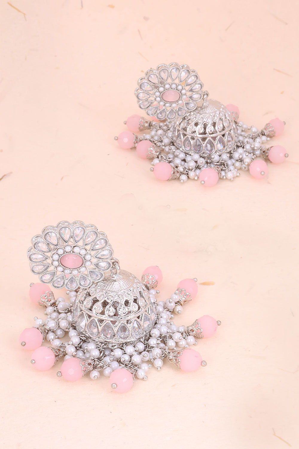 Handcrafted Peach Stones Cluster Beads Drop Jhumka Earrings "Add a touch of elegance and sophistication to any outfit with these handcrafted peach stones cluster beads drop jhumka earrings! Each piece is carefully designed and crafted to perfection, making it a unique and stunning addition to your jewelry collection. Don't miss out on the chance to own a one-of-a-kind piece and elevate your style with these gorgeous jhumka earrings!"