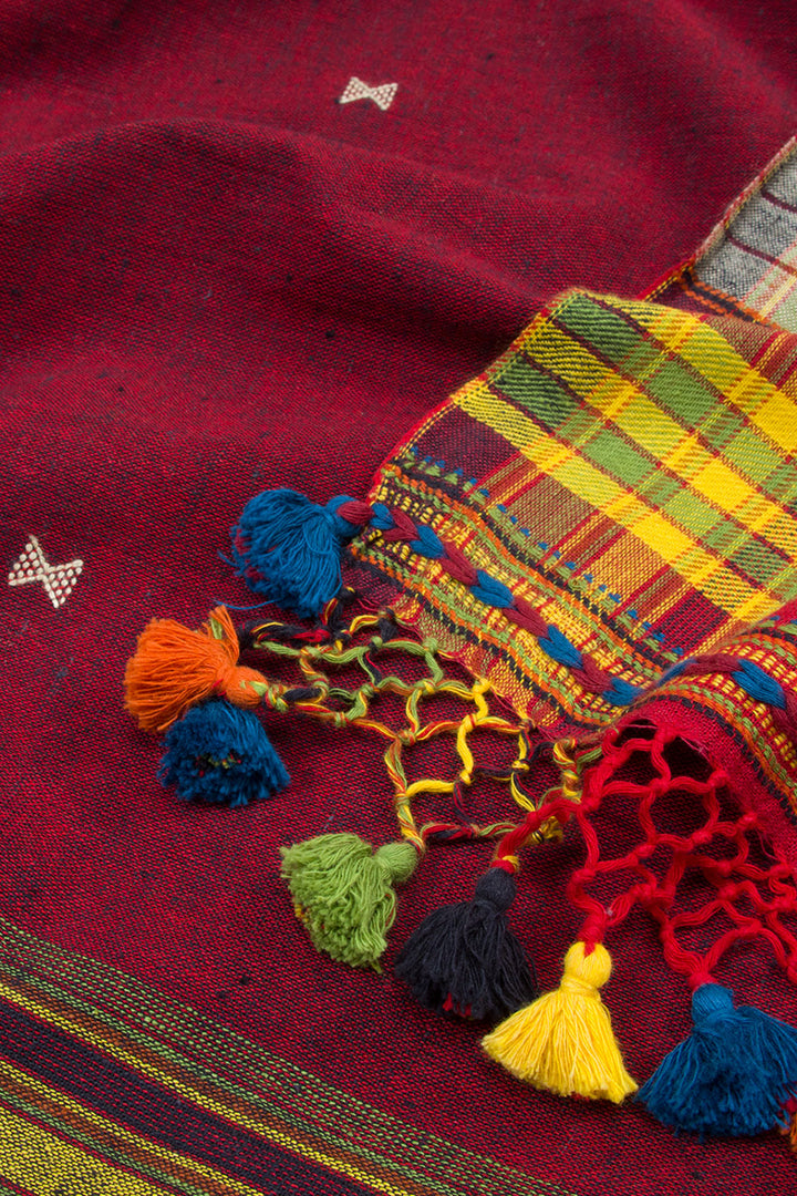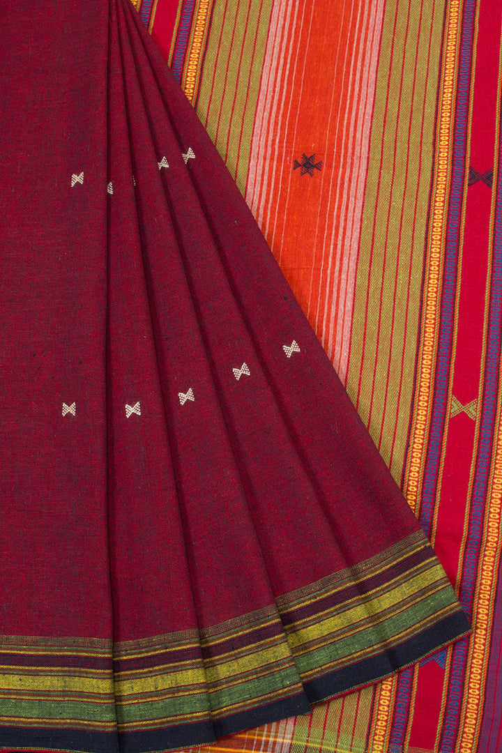 Maroon Handloom Bhujodi Kala Cotton Saree 10063042