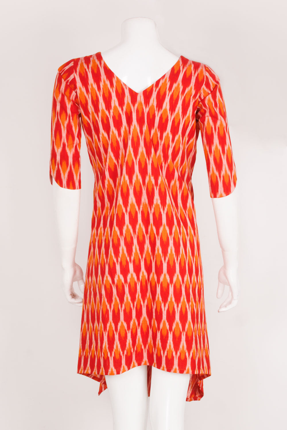 Handloom Ikat Curved A-line Cotton Kurta with V Neckline, Elbow Sleeve and with Pocket 10060393